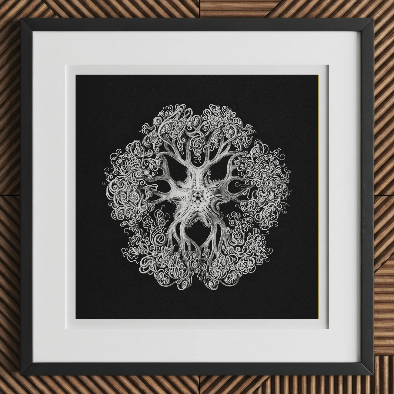 Como arte de pared, cerrará la brecha entre el entusiasta del acuario y el coleccionista de arte. Abraza esta meditación monocromática sobre la maestría de la naturaleza, donde cada espiral y zarcillo cuenta una historia de adaptación y belleza. Este opus de ofiuroideo te espera, listo para lanzar su hechizo sobre tu decoración.