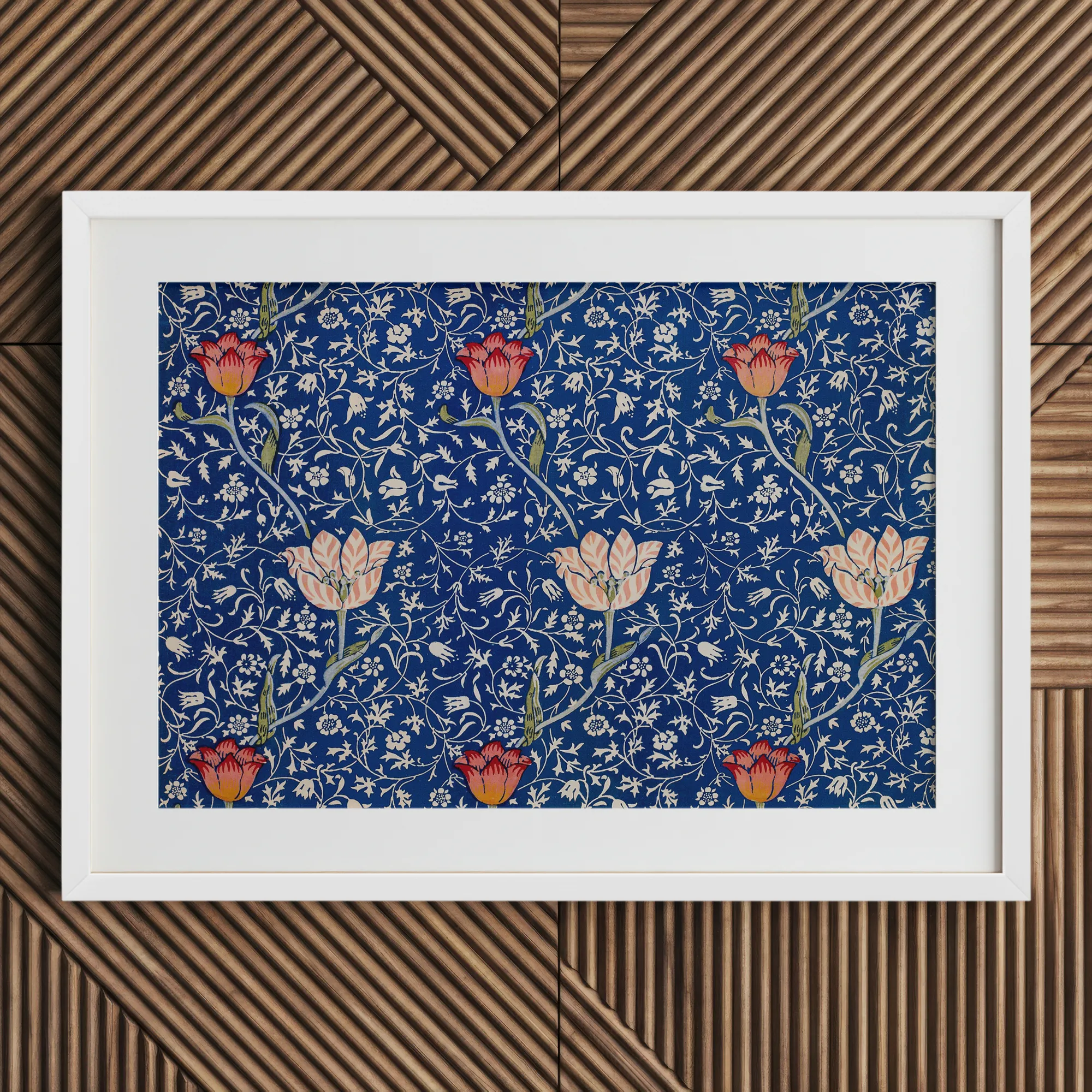 "Medway" despoja los excesos de su primo "Garden Tulip", dejando un baile más puro y rítmico de la naturaleza. Cuelga esta impresión y observa cómo tu espacio florece con el encanto del siglo XIX y el toque del siglo XXI.