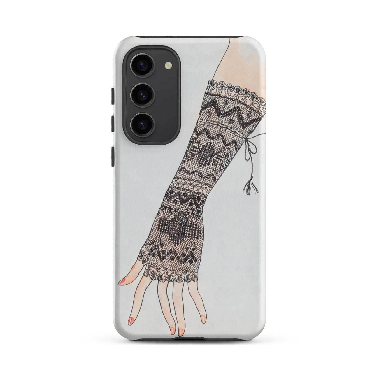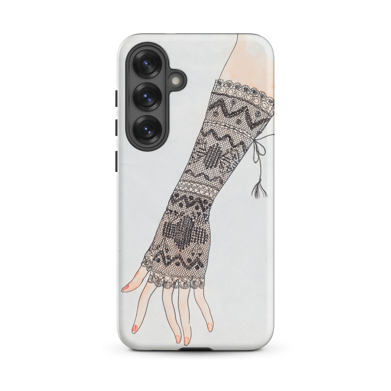Esta funda de Samsung conserva un momento en que la geometría Art Deco se fusionó con la elegancia femenina, cuando los accesorios se convirtieron en declaraciones silenciosas de poder y gracia. Protegiendo su dispositivo, el diseño revive la ilustración de moda, las impresiones de alta costura, el arte textil y el espíritu del modernismo de entreguerras con cada mirada.