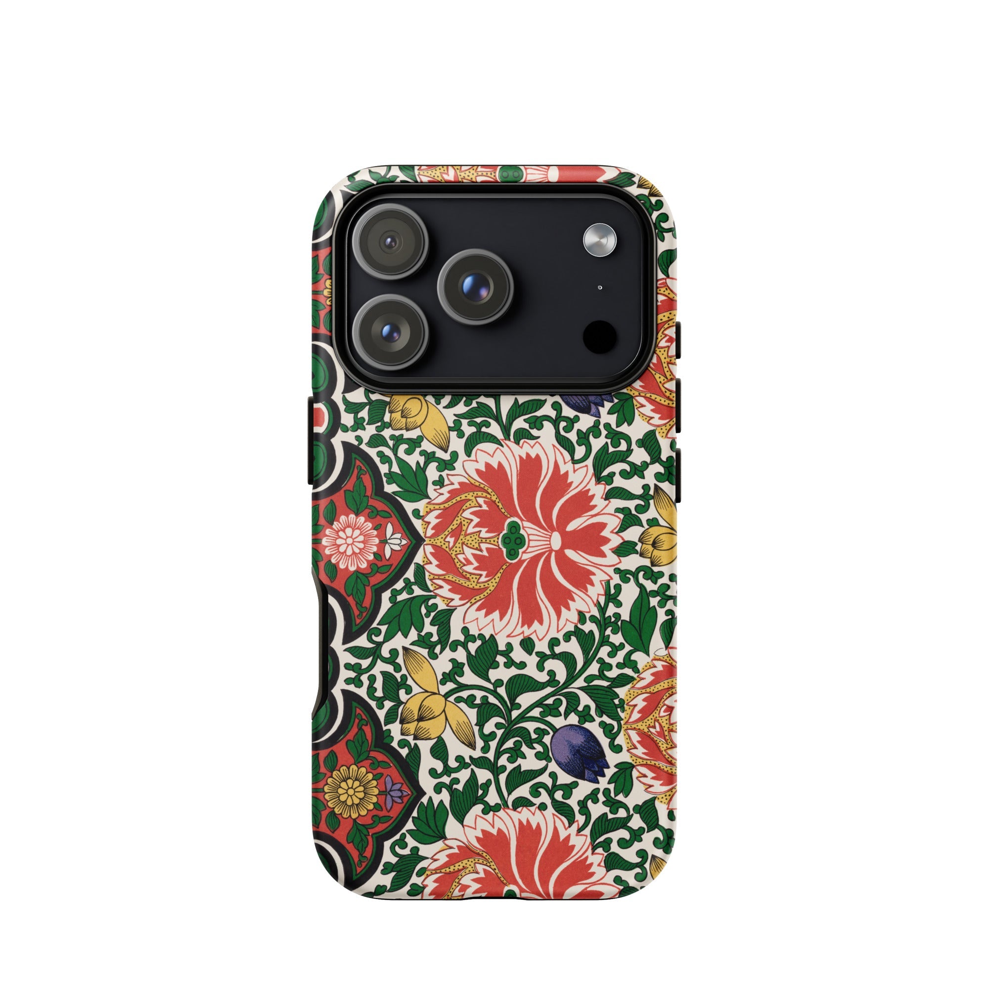 Las flores rítmicas estallaron, una vibrante sinfonía floral china se derrama en tu iPhone caso. Owen Jones'El diseño de chinoiserie susurra historias de pasión por los viajes victorianos, fusionando la elegancia oriental con fantasía occidental. Los exuberantes zarcillos verdes acarician las peonías de coral, sus pétalos se despliegan como pergaminos secretos. Los brotes dorados guiñan traviesa, mientras que las ciruelas índigo se esconden en medio del follaje verde.