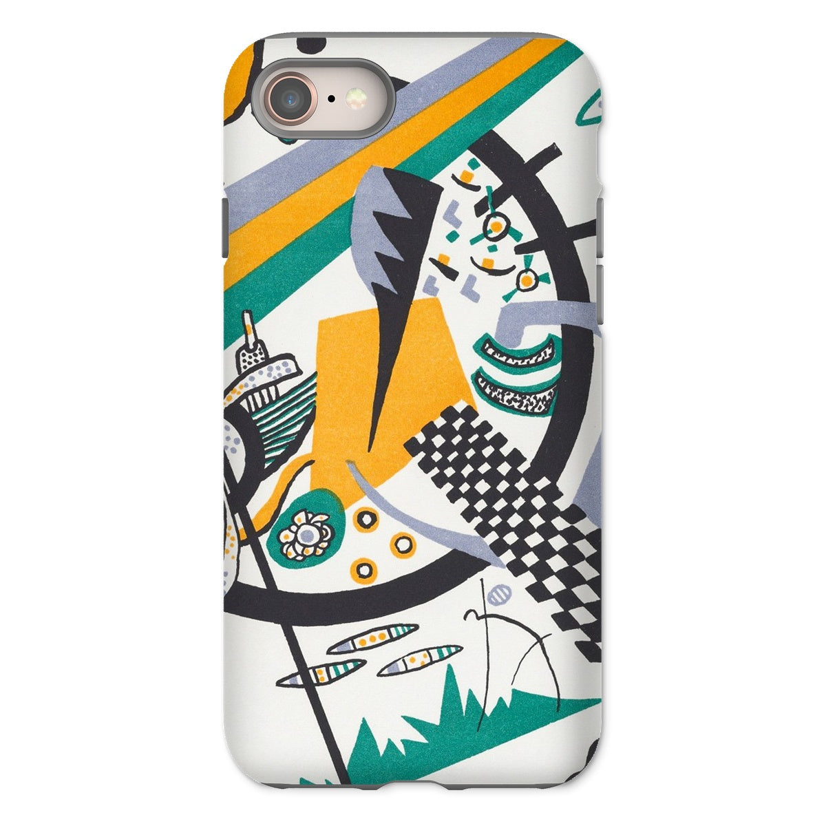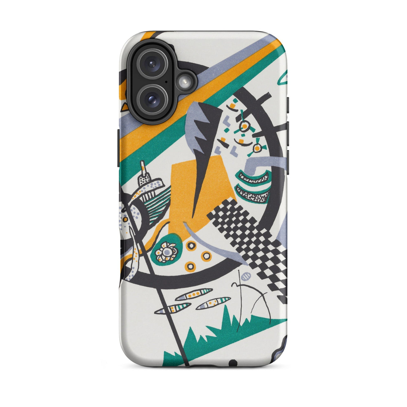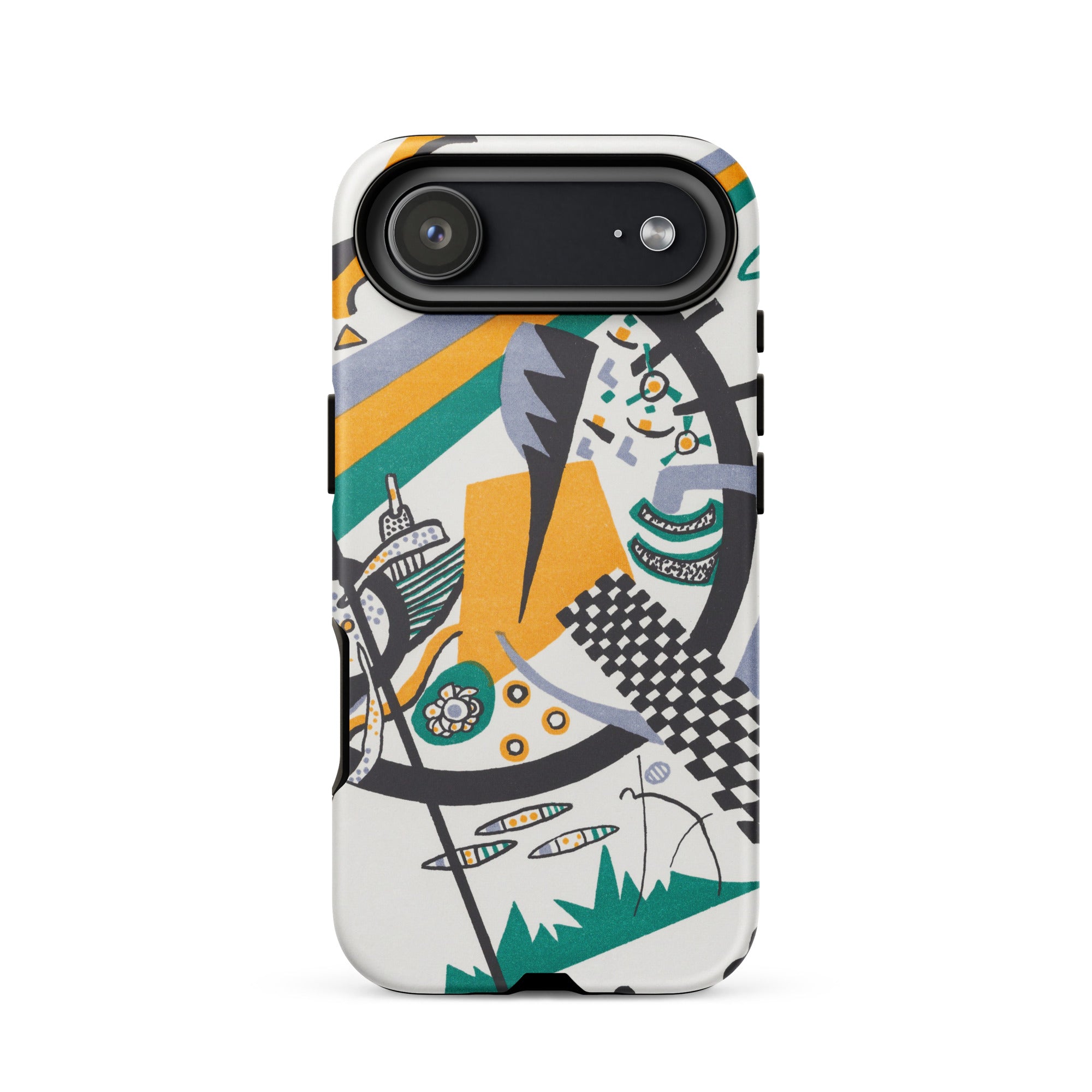 Esta funda para iPhone te sumerge en el mundo vibrante y rítmico de "Pequeños Mundos IV" de Wassily Kandinsky. Inspirada por el padre del arte abstracto, esta pieza captura la esencia del movimiento, la emoción y la geometría dinámica. Cada forma en la funda, desde las formas negras angulares hasta los círculos en espiral, se siente como una composición musical, tocando en un patrón armonioso pero impredecible. Las audaces salpicaduras de amarillo, azul verdoso y naranja puntúan el diseño con energía, mientras que los intrincados elementos en blanco y negro ofrecen un contrapeso de estructura y contraste.