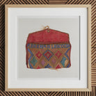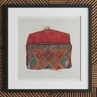 El textil intrincadamente tejido muestra un caleidoscopio de tonos: rojos ricos, azules profundos y marrones terrosos bailan a través del lienzo. Los motivos de diamantes y los patrones geométricos evocan el espíritu de Art Deco, mientras que el cuero desgastado y los bordes deshilachados susurran cuentos de aventuras pasadas.