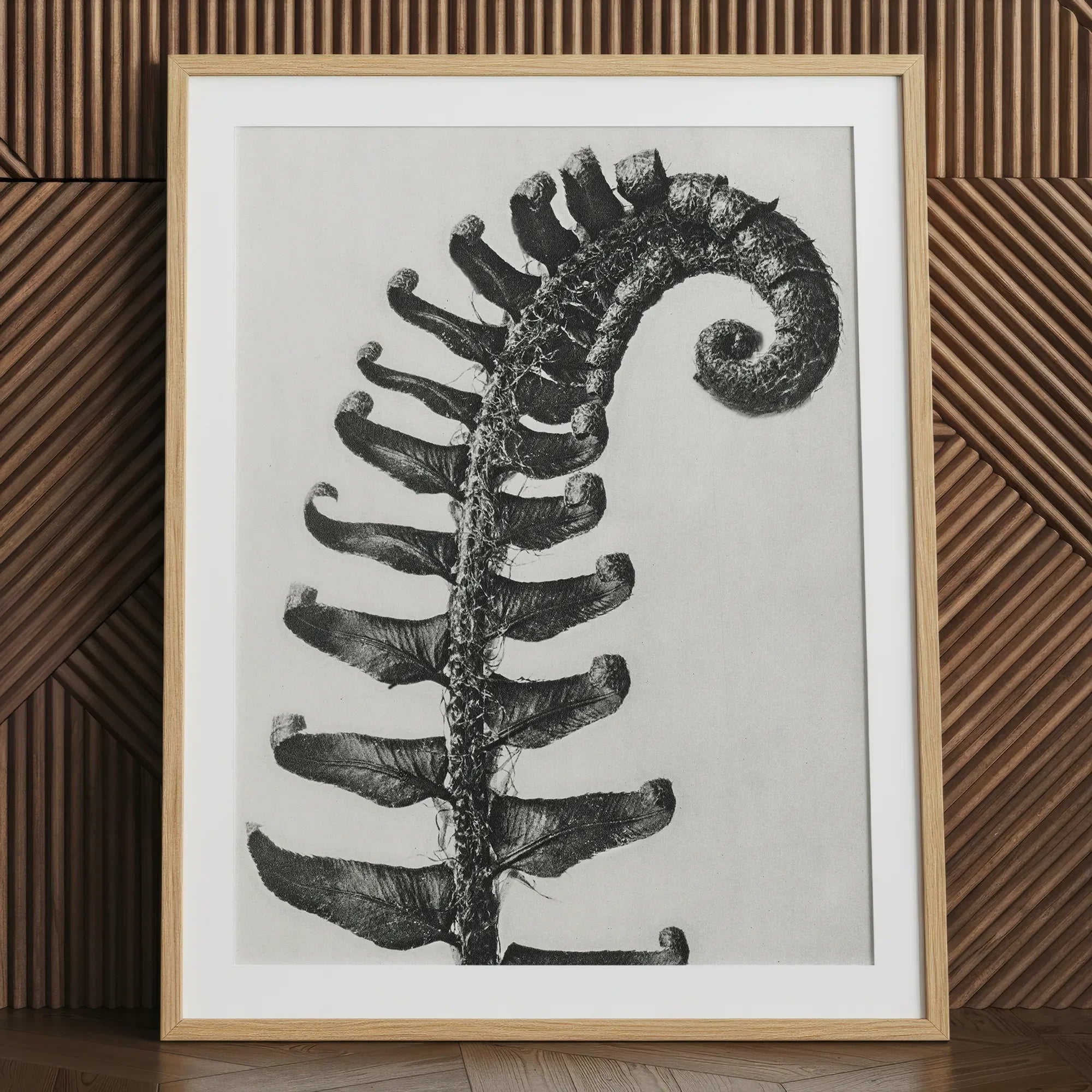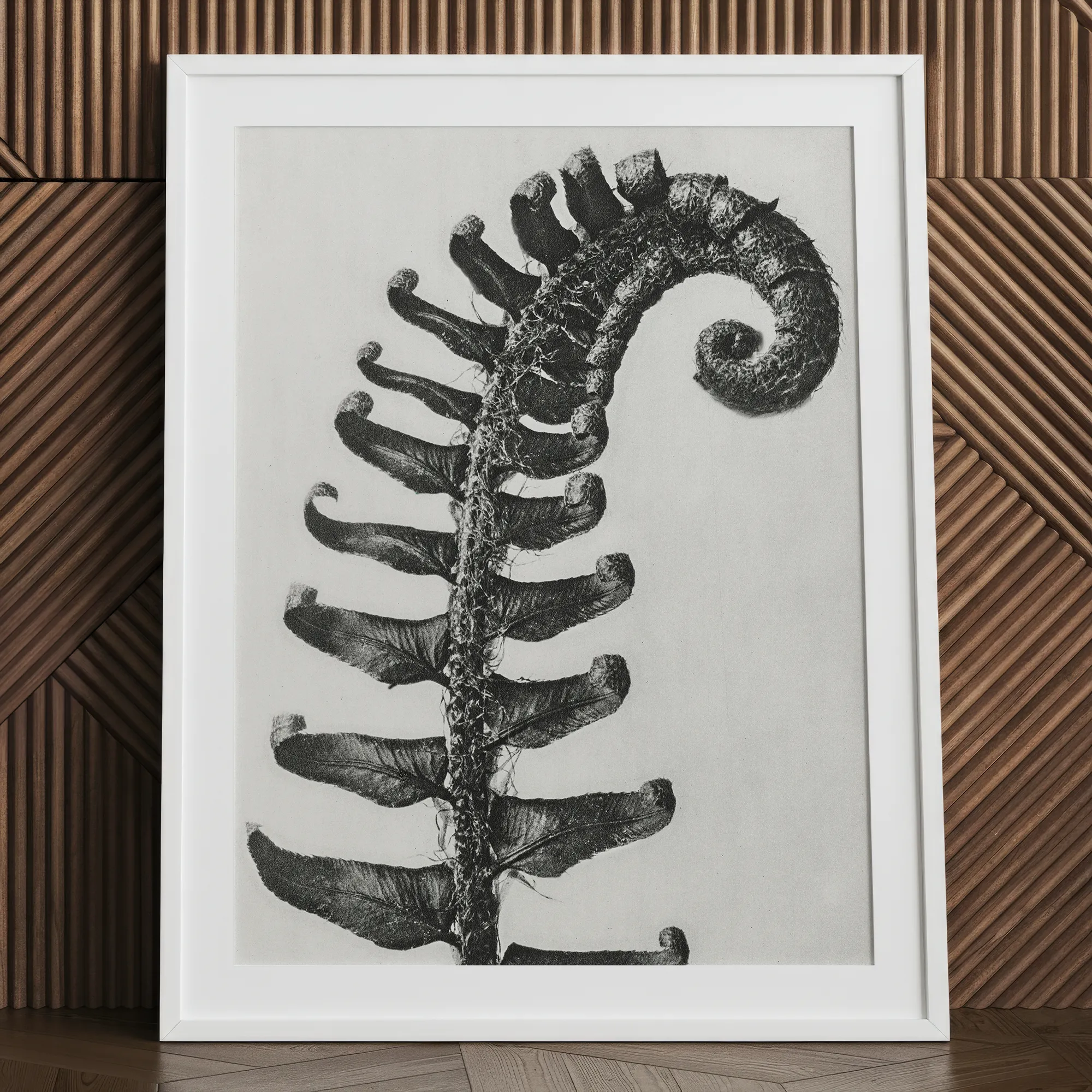 He aquí la complejidad fascinante de la arquitectura de la naturaleza en esta cautivadora multa de Karl Blossfeldt estampado de arte. Serás atraído a la espiral hipnótica del polystichum munitum, o al espada-férnate, ya que despliega su elegancia prehistórica ante tus ojos. Esta fotografía botánica en blanco y negro transforma un helecho humilde en una obra maestra escultórica, cada una frond testamento del arte de Evolution.
