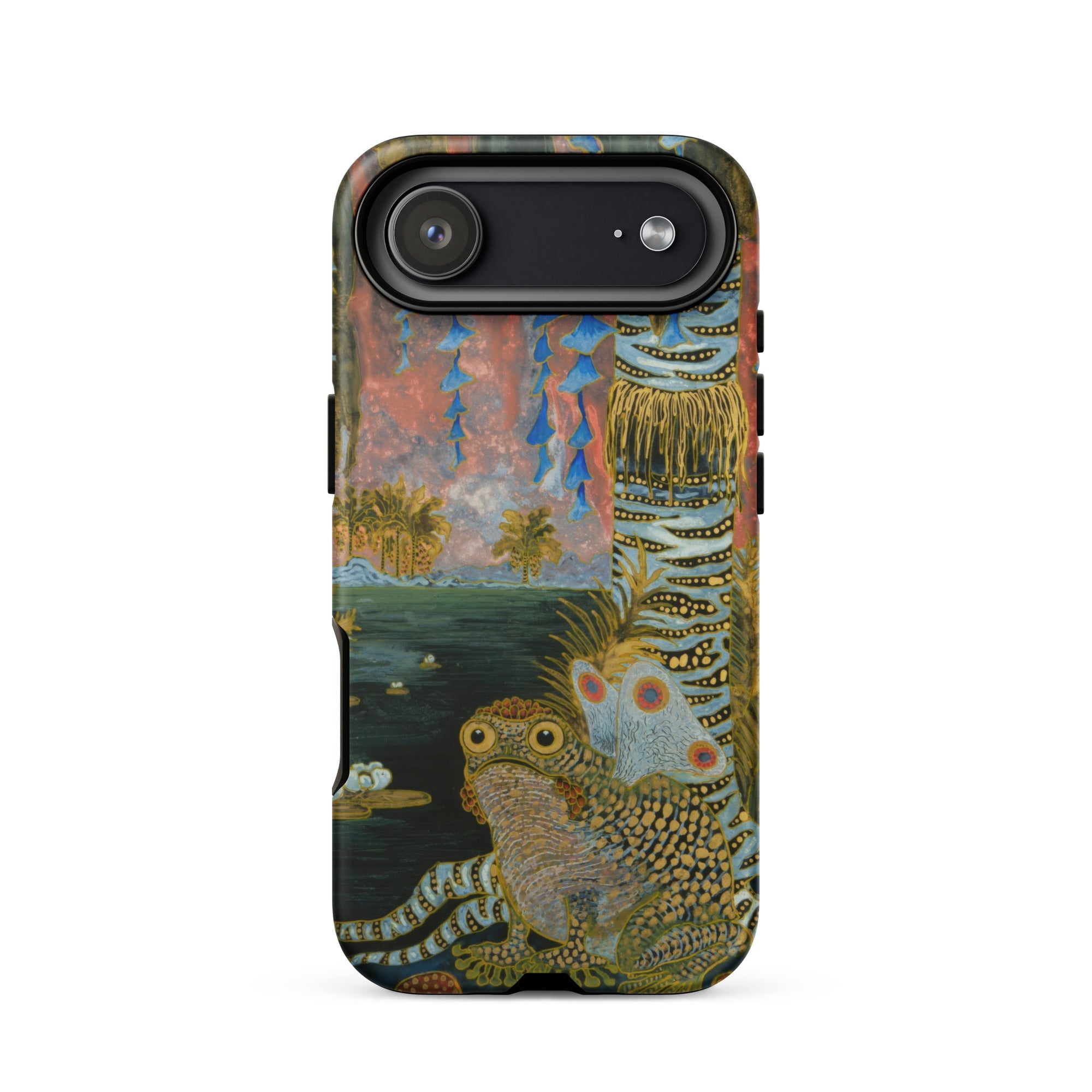 Esta funda de iPhone transforma el diseño protector en un portal de otro mundo, donde anfibio, flor y agua se entrelazan en una celebración luminosa de renovación, crecimiento metamórfico y el resurgimiento eterno de la primavera.