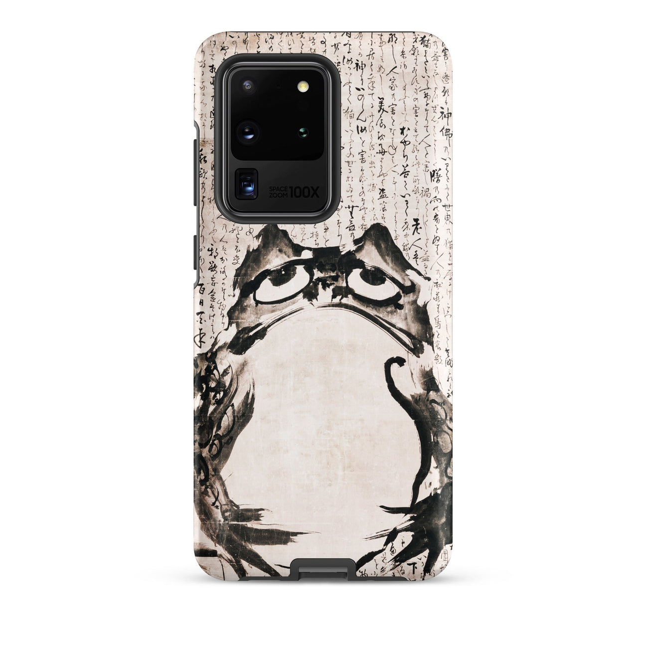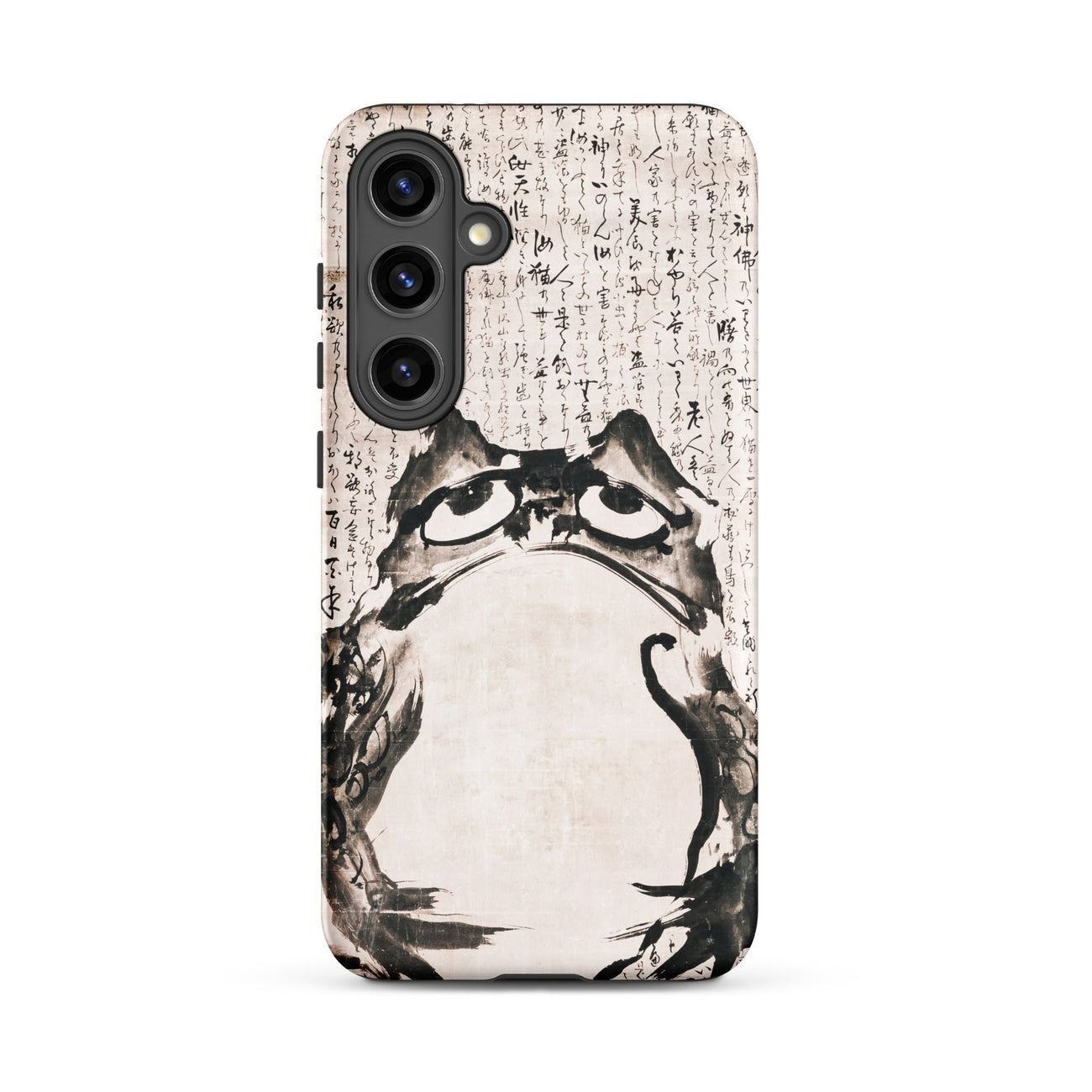 Este estuche Samsung lleva ese teatro silencioso a tu palma, su carcasa protectora envuelta en elegancia de la era Edo. Una fusión perfecta de función y arte, convierte tu teléfono en un guardián de tinta, lluvia y leyendas de anfibios.