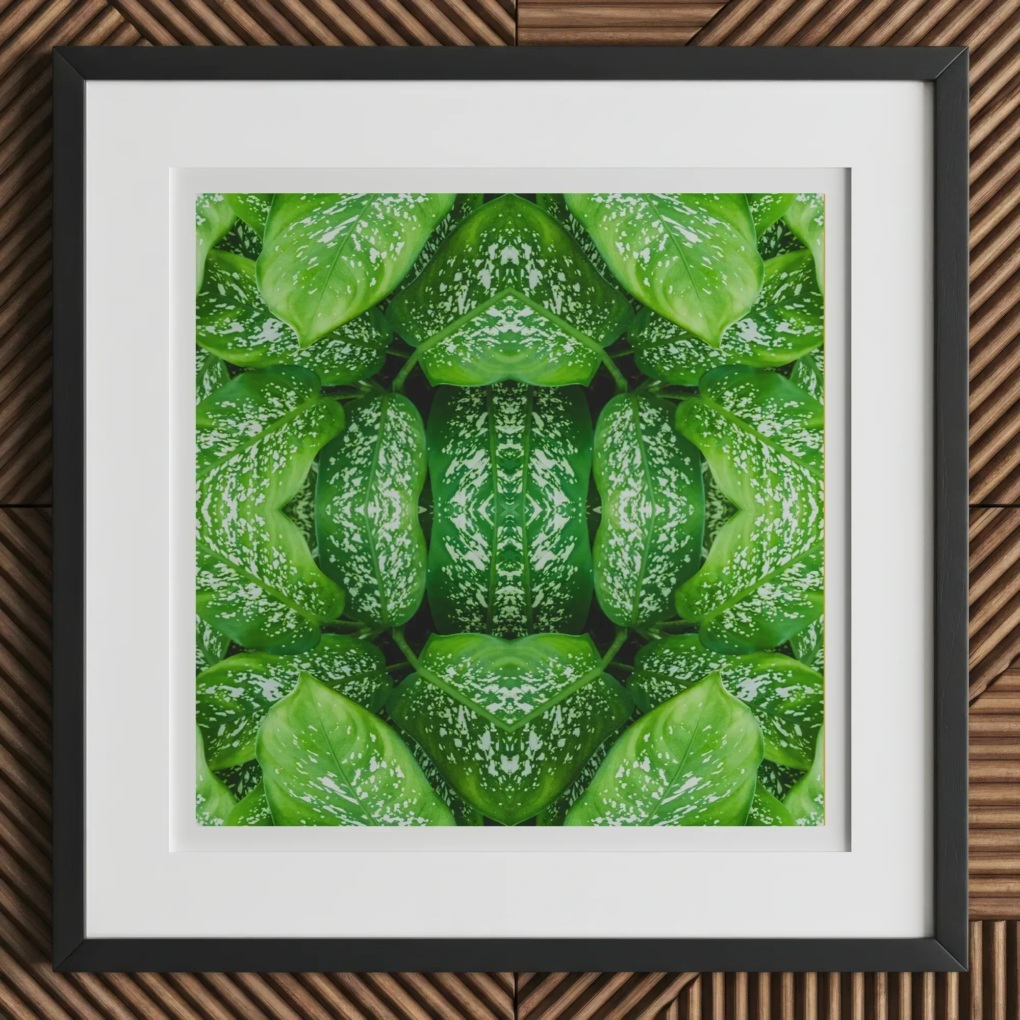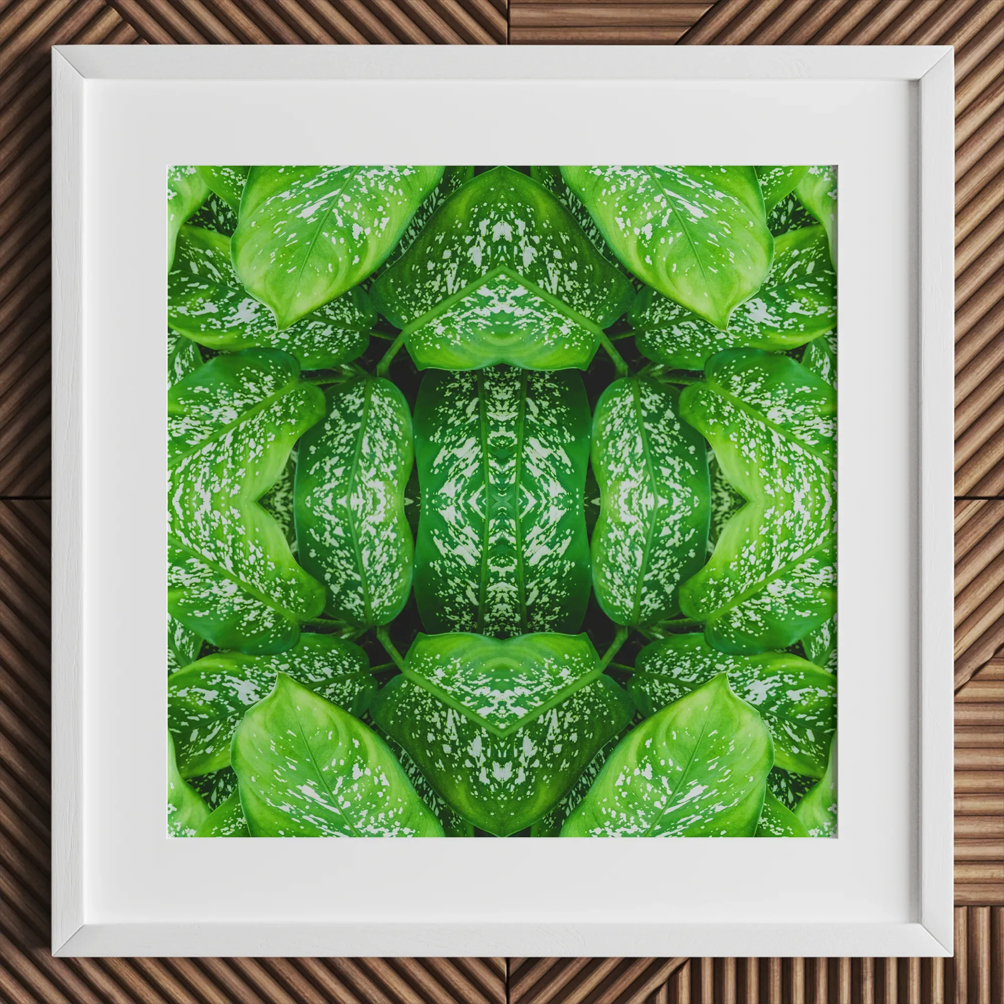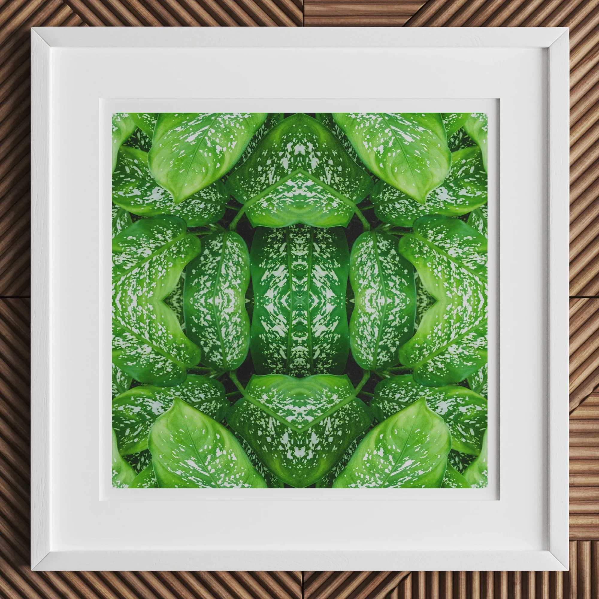 Sumergirse en un caleidoscopio de clorofila con esta hoja tropical de salpicaduras estampado de arte. No solo estás mirando las hojas, estás mirando a través del espejo Funhouse de la naturaleza. La simetría se volvió salvaje, esta impresión botánica moderna transforma el exuberante follaje de dieffenbachia en un mandala hipnótica.