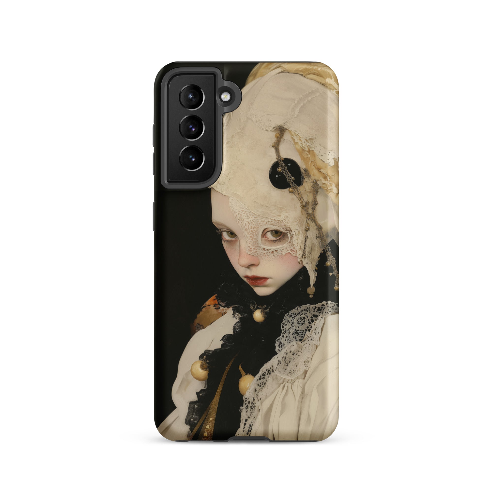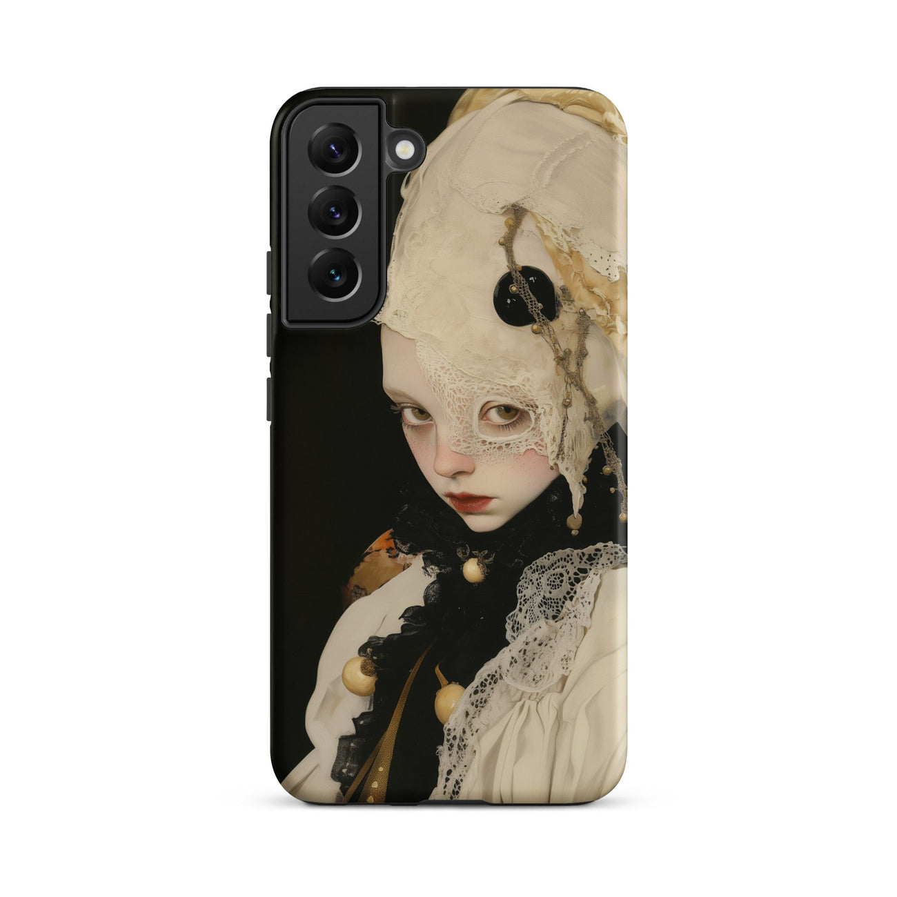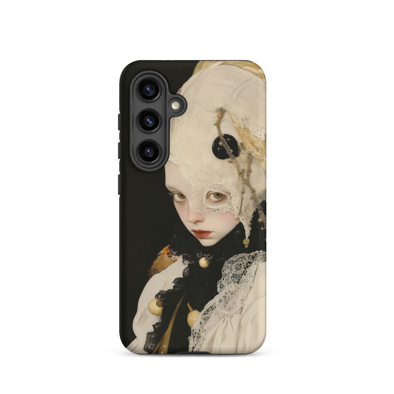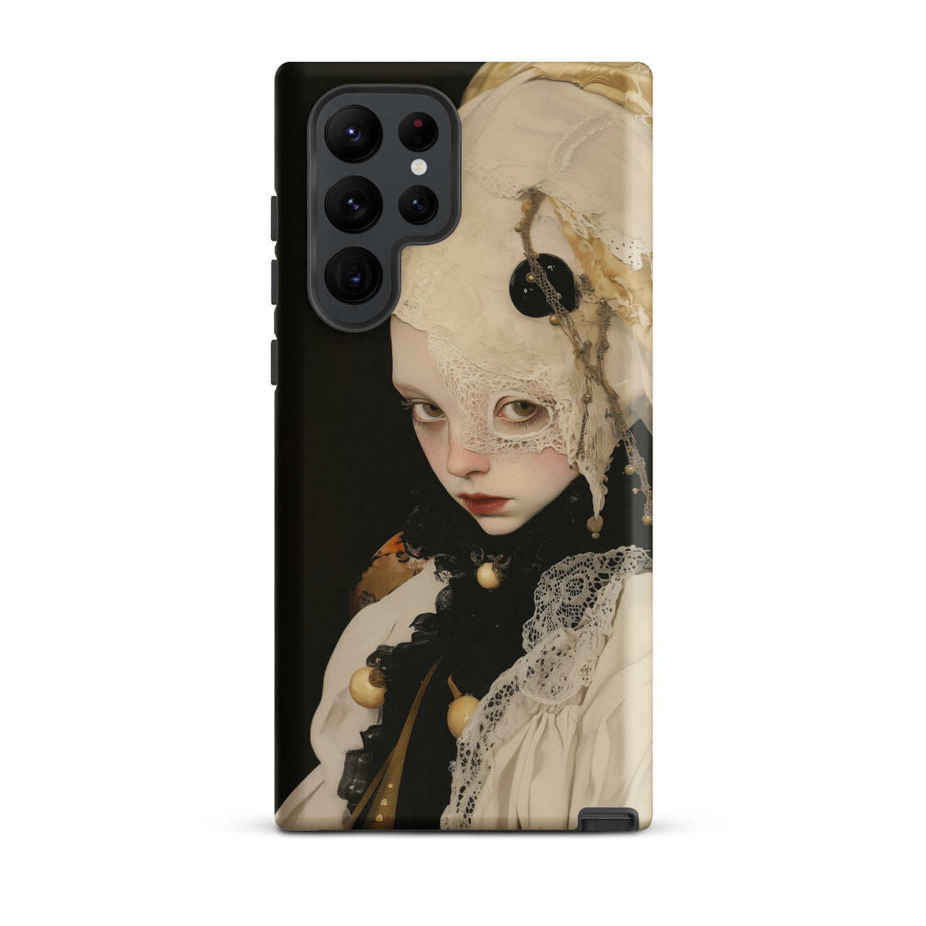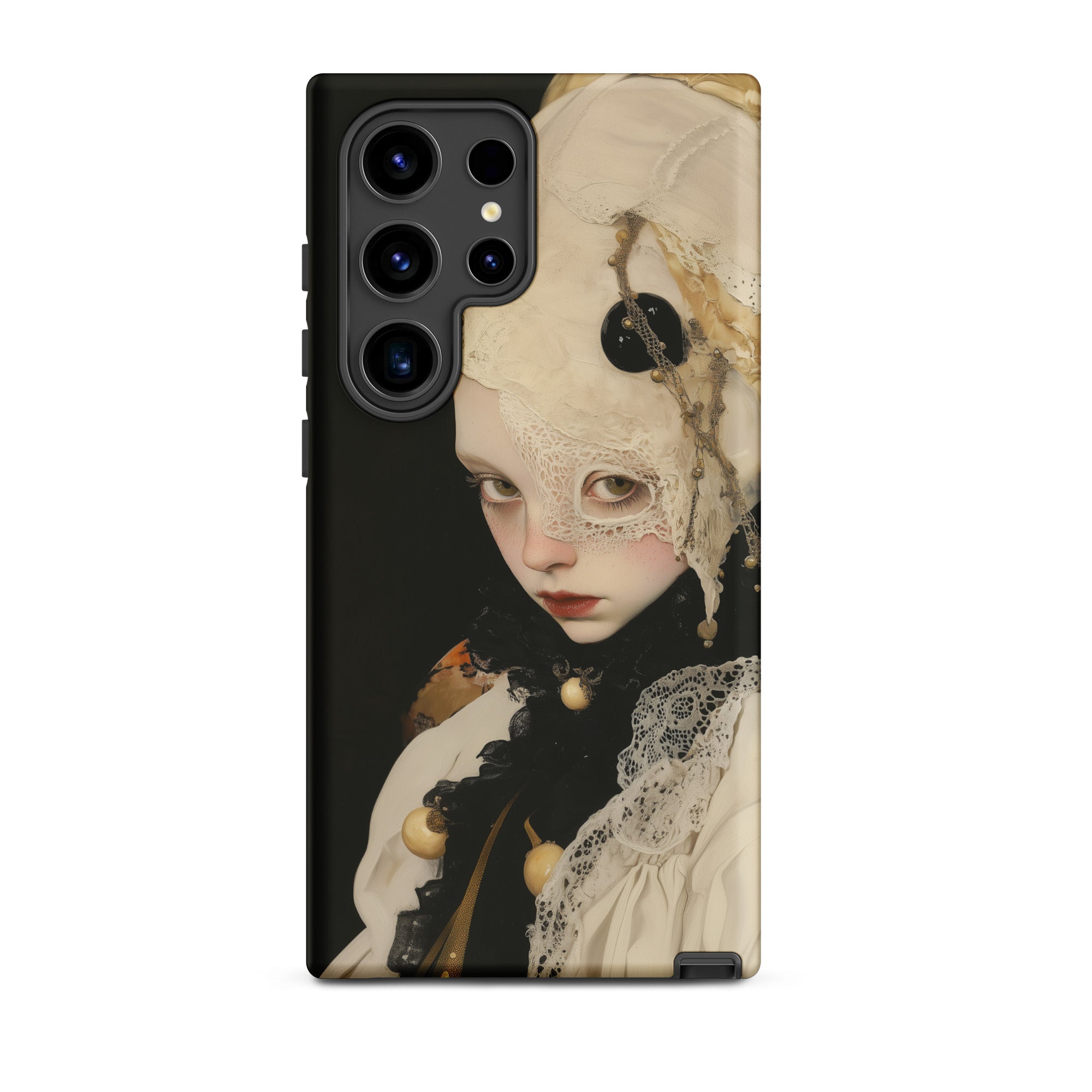 Este estuche de Samsung transforma tu teléfono en una reliquia de rebelión íntima, su retrato vivo de opulencia y amenaza silenciosa—un objeto tanto protector como hechizado, donde el teatro de la moda se encuentra con la gracia espectral de lo arcano.
