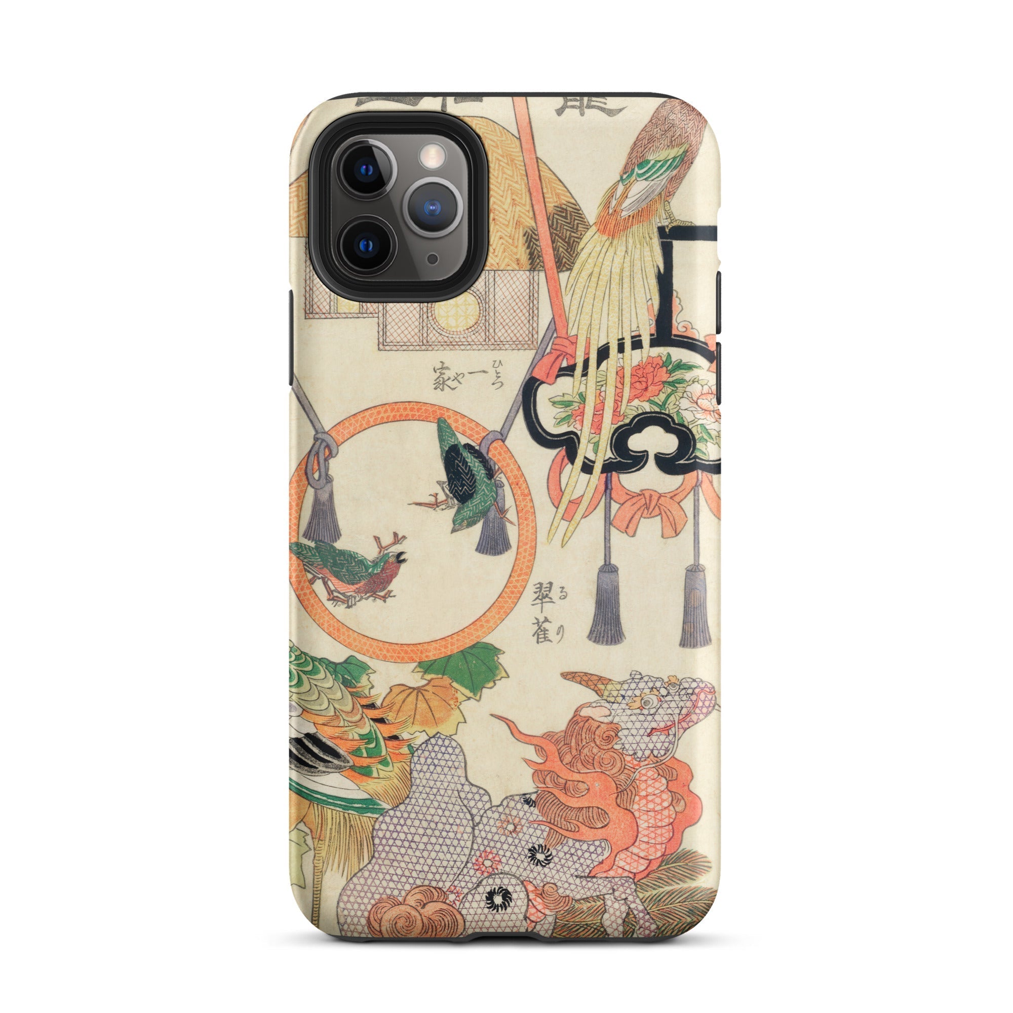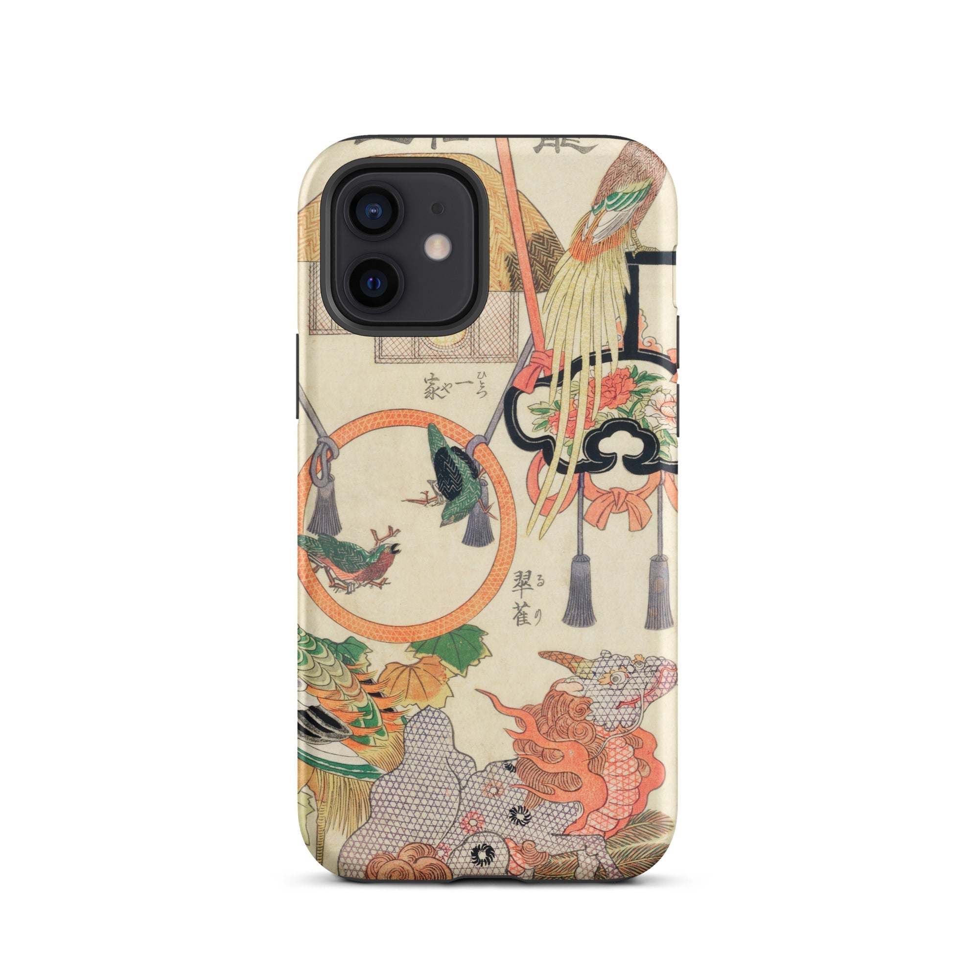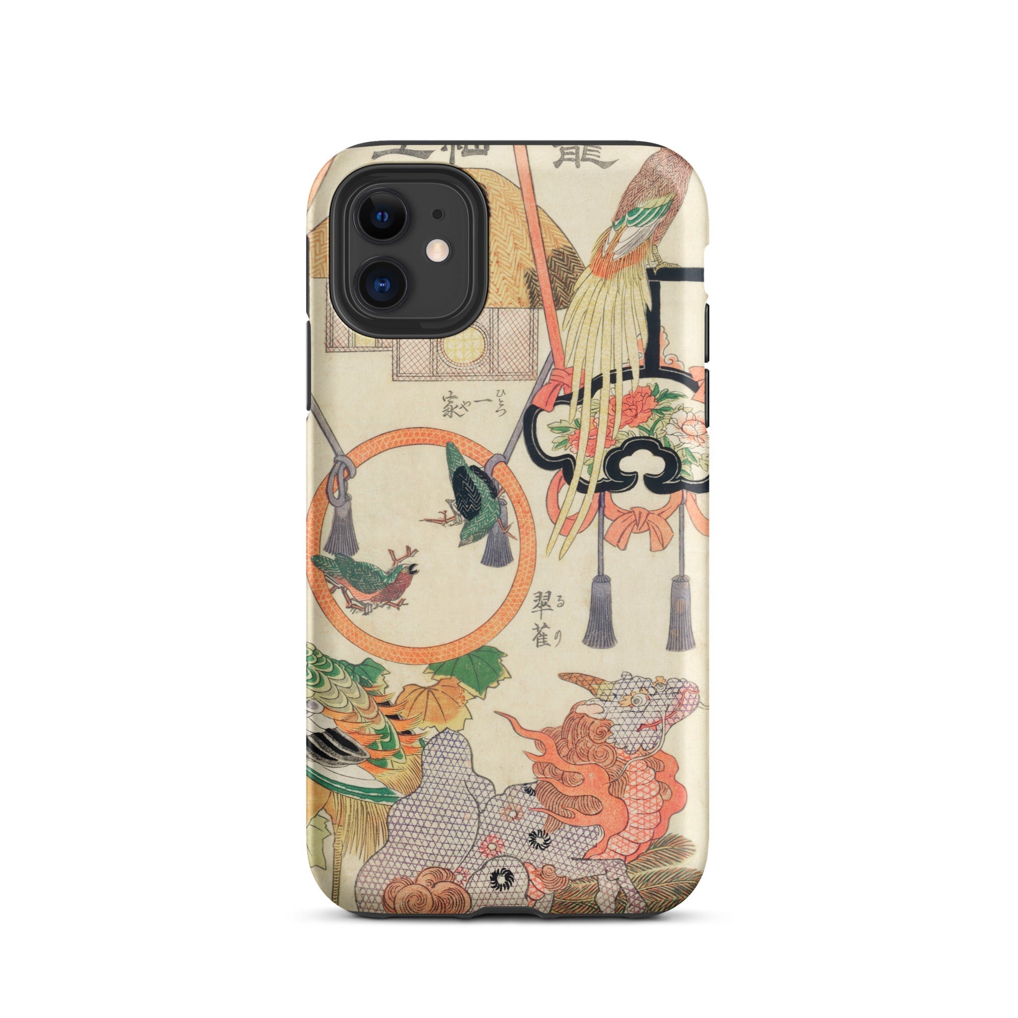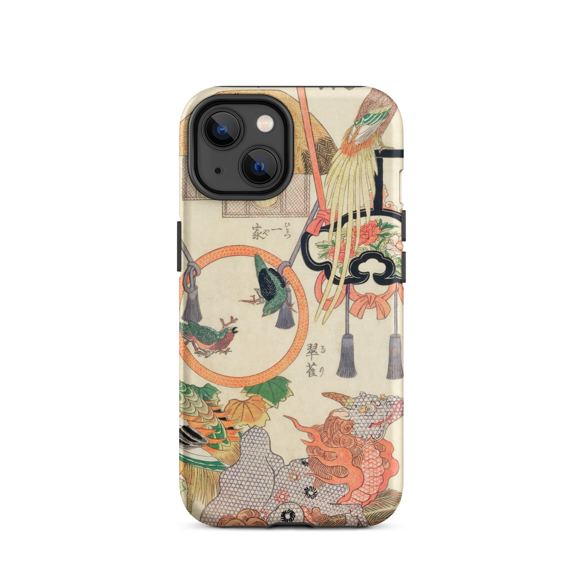Esta funda para iPhone de grabado en madera japonés refracta el kazarimono a través de una lente del siglo XXI. Y estarás sosteniendo un ensamblaje de iconografía Heian, folklore shishimai, auspiciosidad shōchikubai y simbolismo textil del periodo Edo recontextualizado como arte móvil. Un estuche no solo para protección, sino para comunión. Entre tinta e interfaz, ritual y recursión, antigua artesanía y tus aventuras diarias a través de internet.