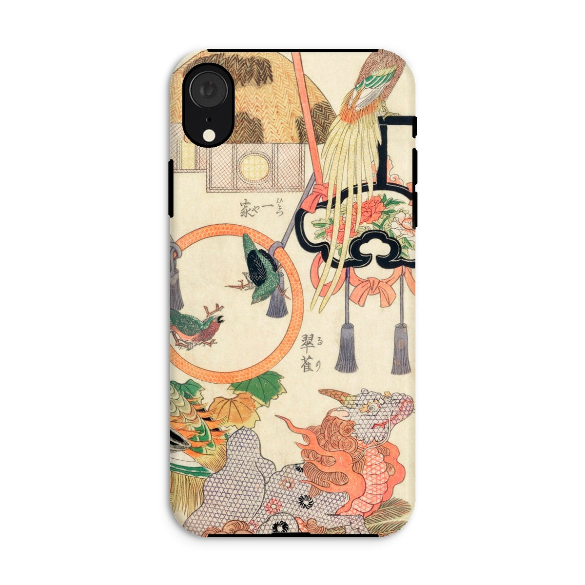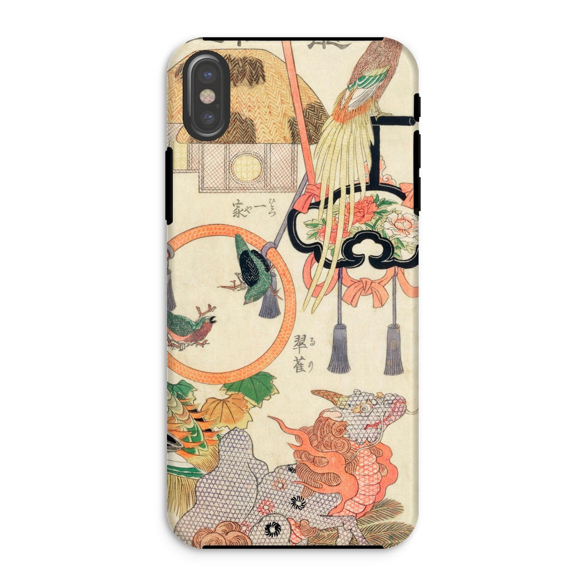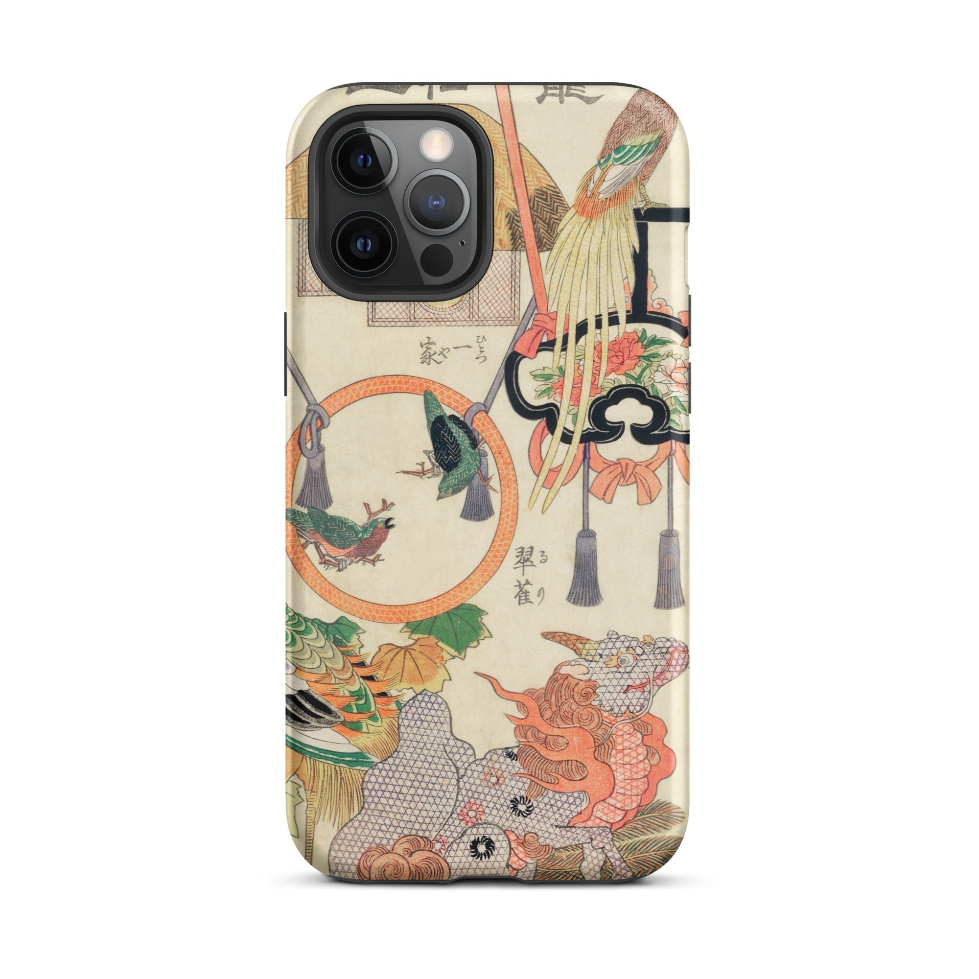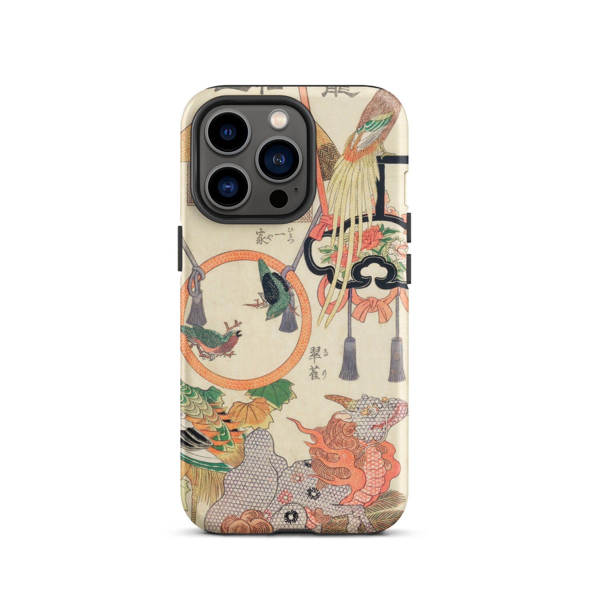 Esta funda para iPhone de grabado en madera japonés refracta el kazarimono a través de una lente del siglo XXI. Y estarás sosteniendo un ensamblaje de iconografía Heian, folklore shishimai, auspiciosidad shōchikubai y simbolismo textil del periodo Edo recontextualizado como arte móvil. Un estuche no solo para protección, sino para comunión. Entre tinta e interfaz, ritual y recursión, antigua artesanía y tus aventuras diarias a través de internet.