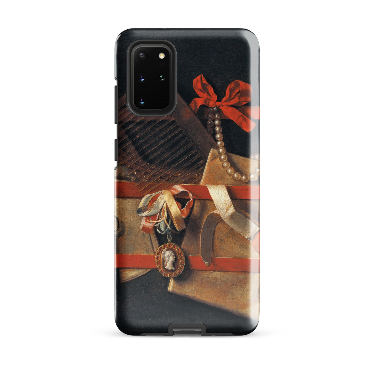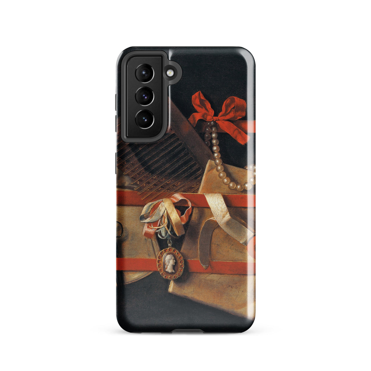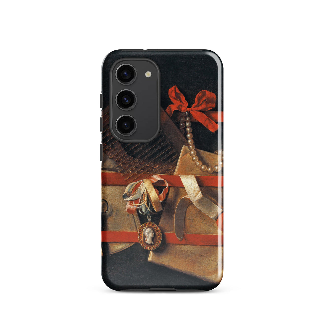 En esta funda de Samsung, la perspectiva se deforma hasta que lo plano se convierte en teatro, uniendo el arte flamenco con la modernidad protectora. Las joyas brillan, la tela respira, la veta de la madera se endurece, recordando que la pintura fue una vez actuación, espectáculo, prestidigitación. Hoogstraeten no deja nada inerte; incluso el silencio rebosa de elegancia escenificada.