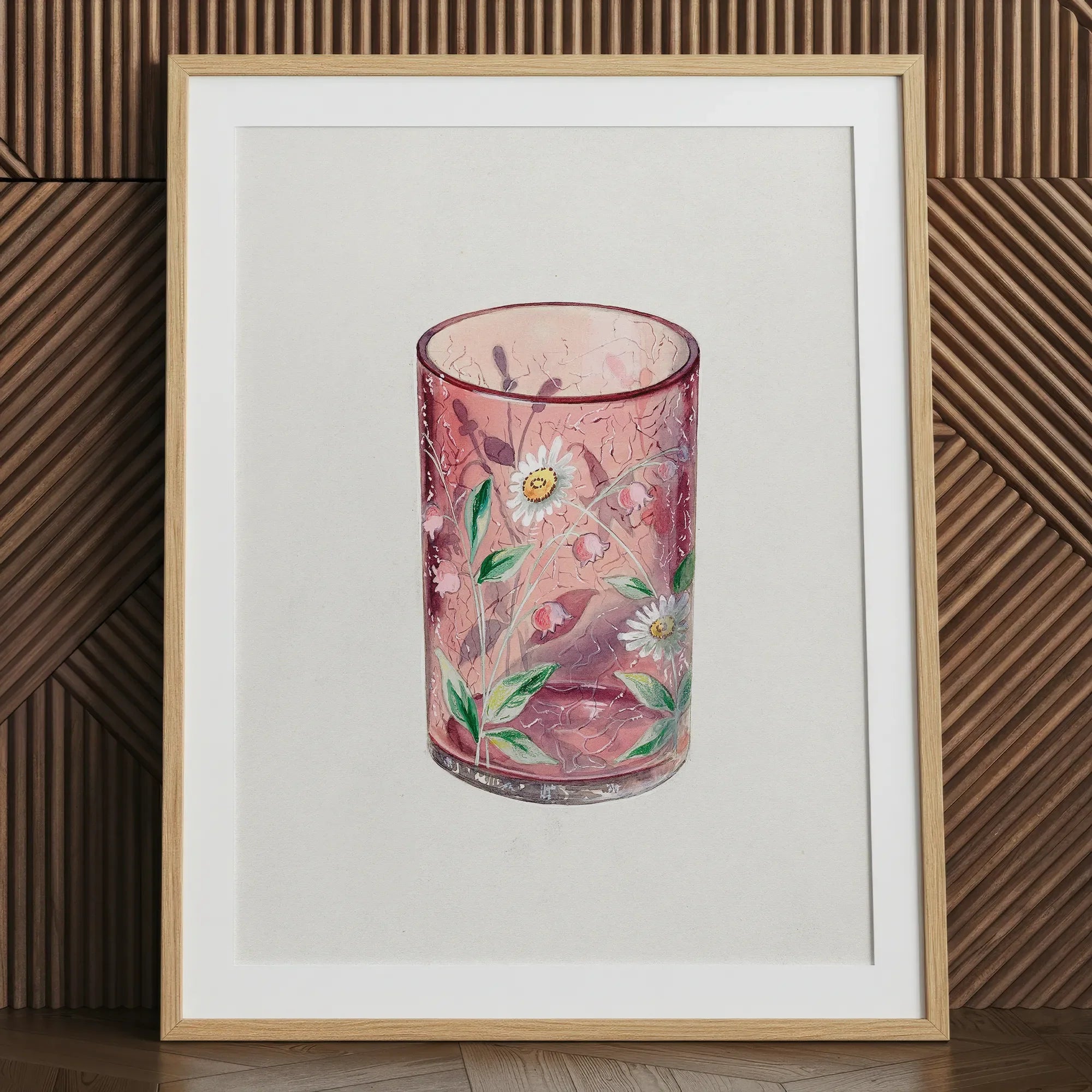 Serás transportado a una era de elegancia pasada con este fascinante vidrio pintado a mano estampado de arte. Las maestras de pinceladas magistrales de Ralph Atkinson dan vida a un vaso cilíndrico, su superficie rosa teñida de un lienzo para fantasía botánica. Delicadas margaritas, sus pétalos marfil y centros dorados, bailan en medio de hojas de esmeraldas en un telón de fondo de sonrojo.