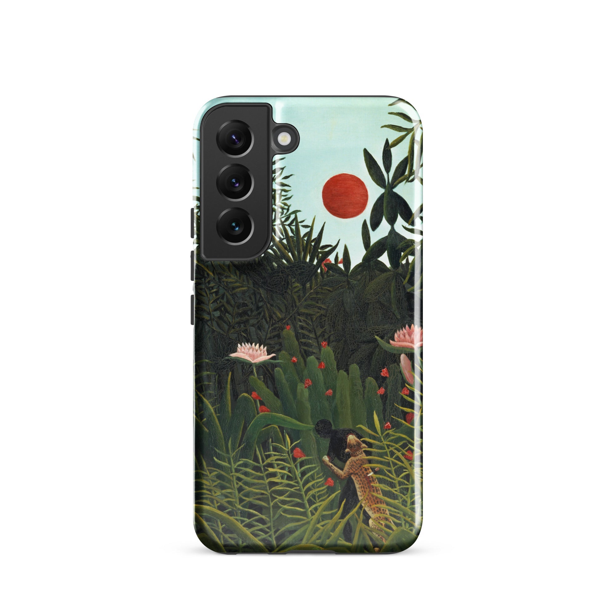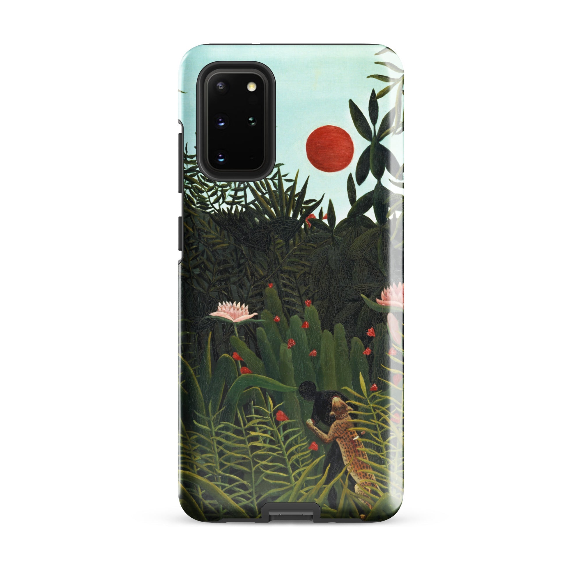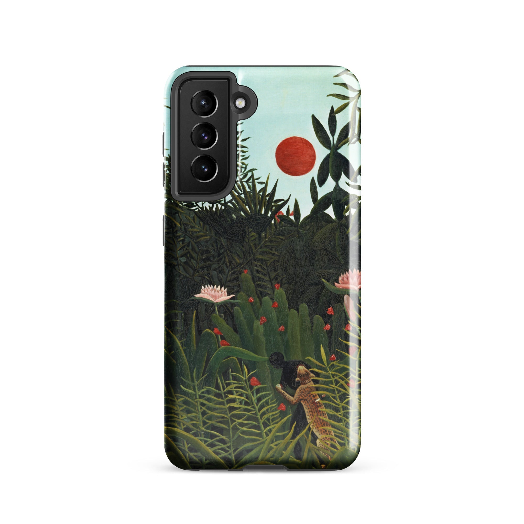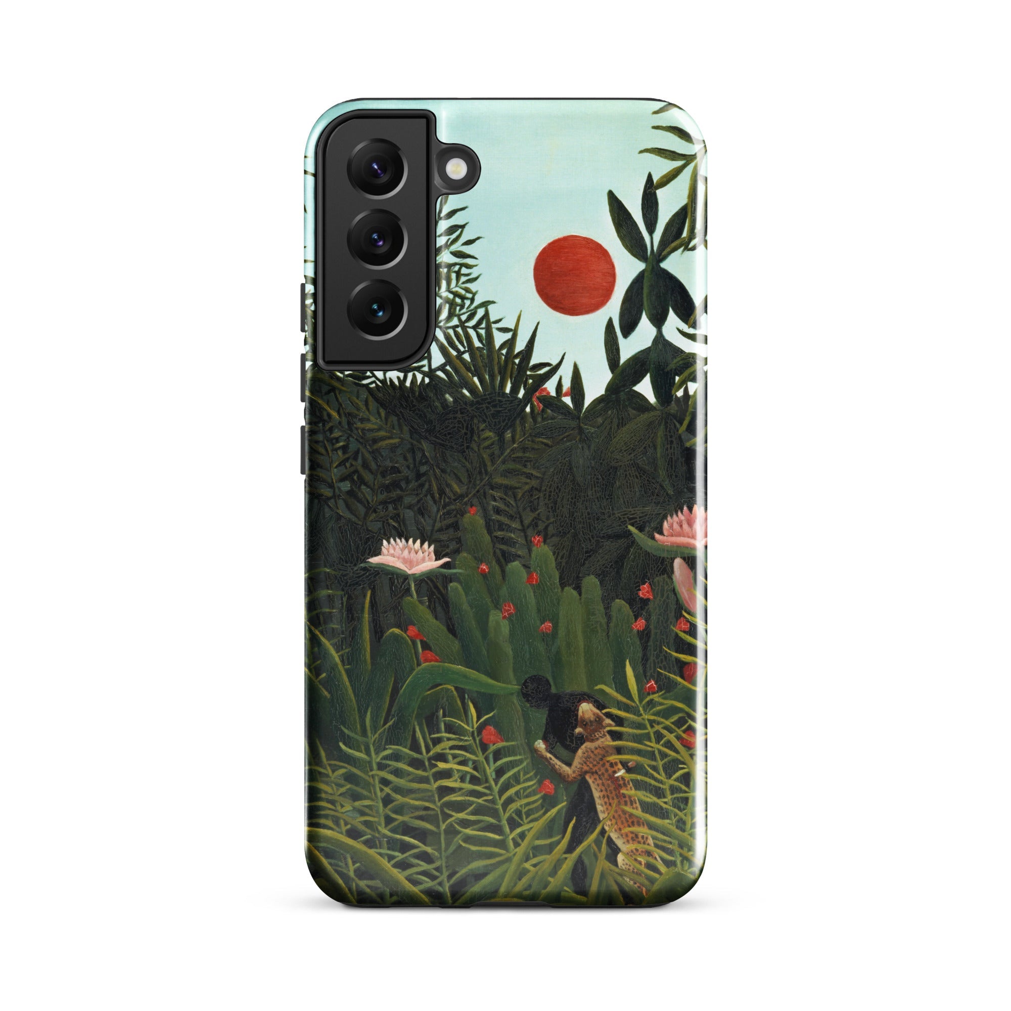 Henri Rousseau’s Virgin Forest unfurls a dreamlike thicket where scale dissolves into rhythmic greenery. Deep emerald fronds overlap with precise, hard-edged clarity, mimicking the humid air of the Jardin des Plantes.