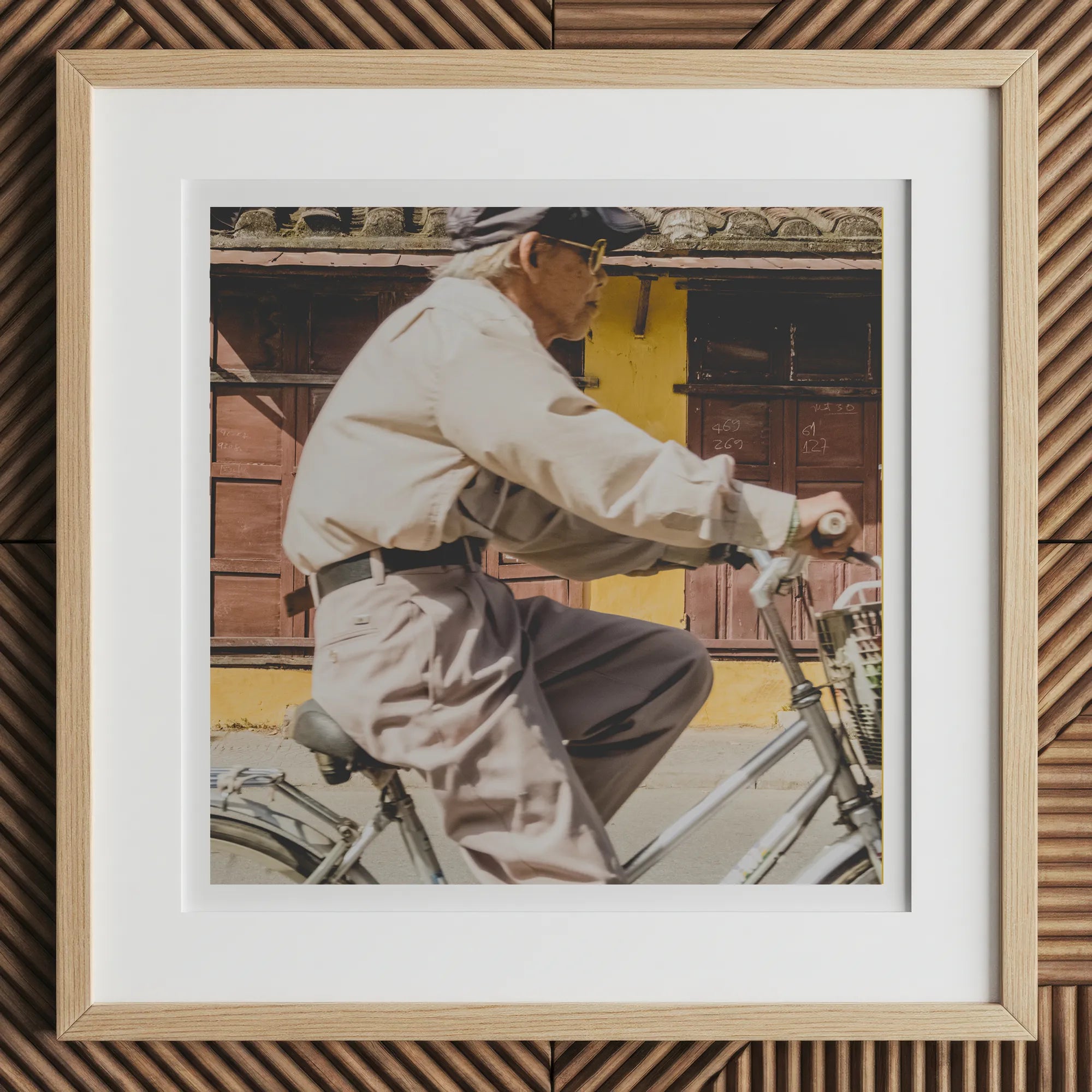 Los tonos apagados de la impresión evocan un ensueño nostálgico, mientras que su composición estremece con impulso hacia adelante. Te perderás en la interacción de texturas: piel desgastada, metal desgastado, madera envejecida. Esta porción de la calle fotografía El arte incorpora la resiliencia, pasando el pasado y el presente en un solo golpe de pedal poderoso. Es más que decoración; Es un recordatorio diario de la cadencia imparable de la vida.