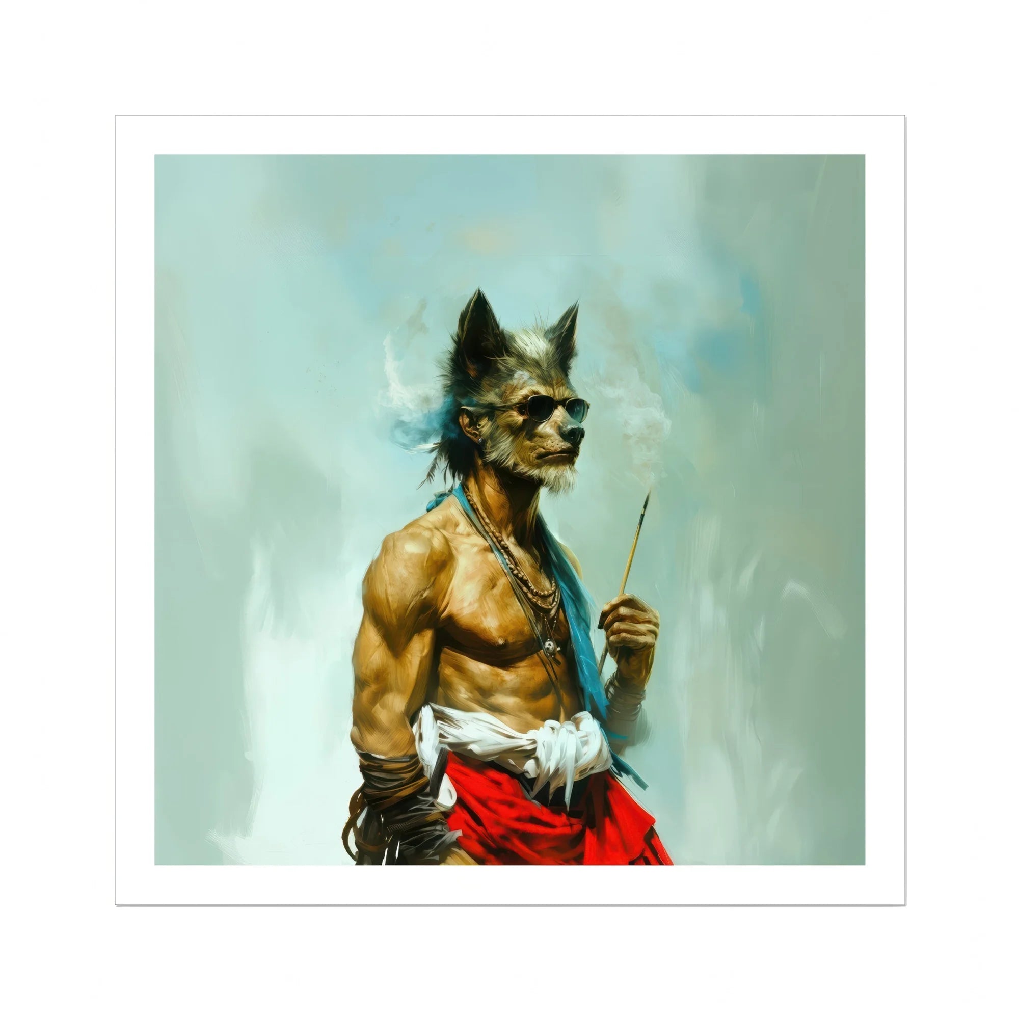 Contre les plaines fumées, il est mythe et Marrow, une apparition marchant entre l'esprit et la terre. Sa poitrine nue - musculaire, altérée - des combats de batailles combattu en silence, des victoires marquées non pas par le sang mais par la sagesse.