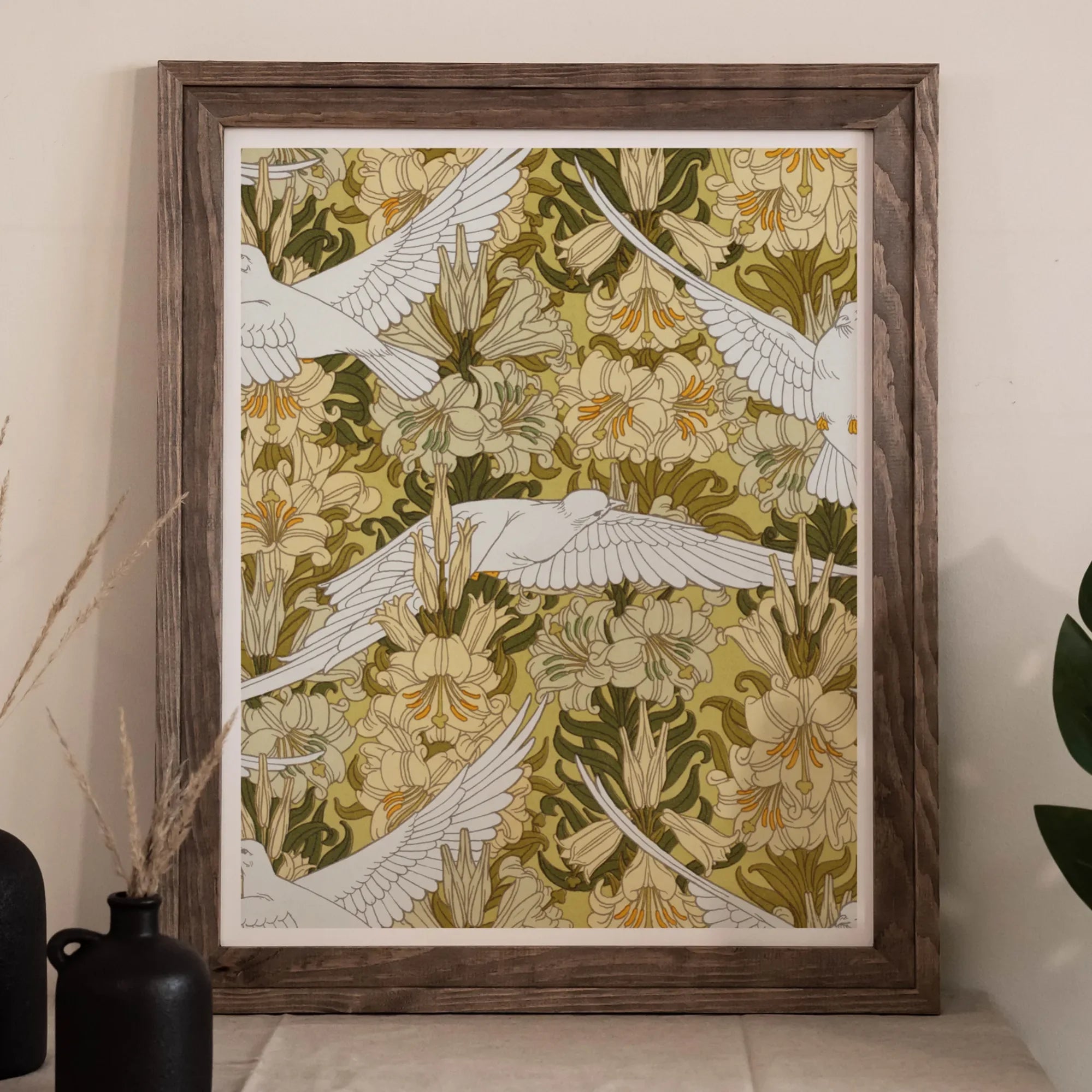 Colombes et lis - Maurice Pillard Verneuil encadré et imprimé monté
