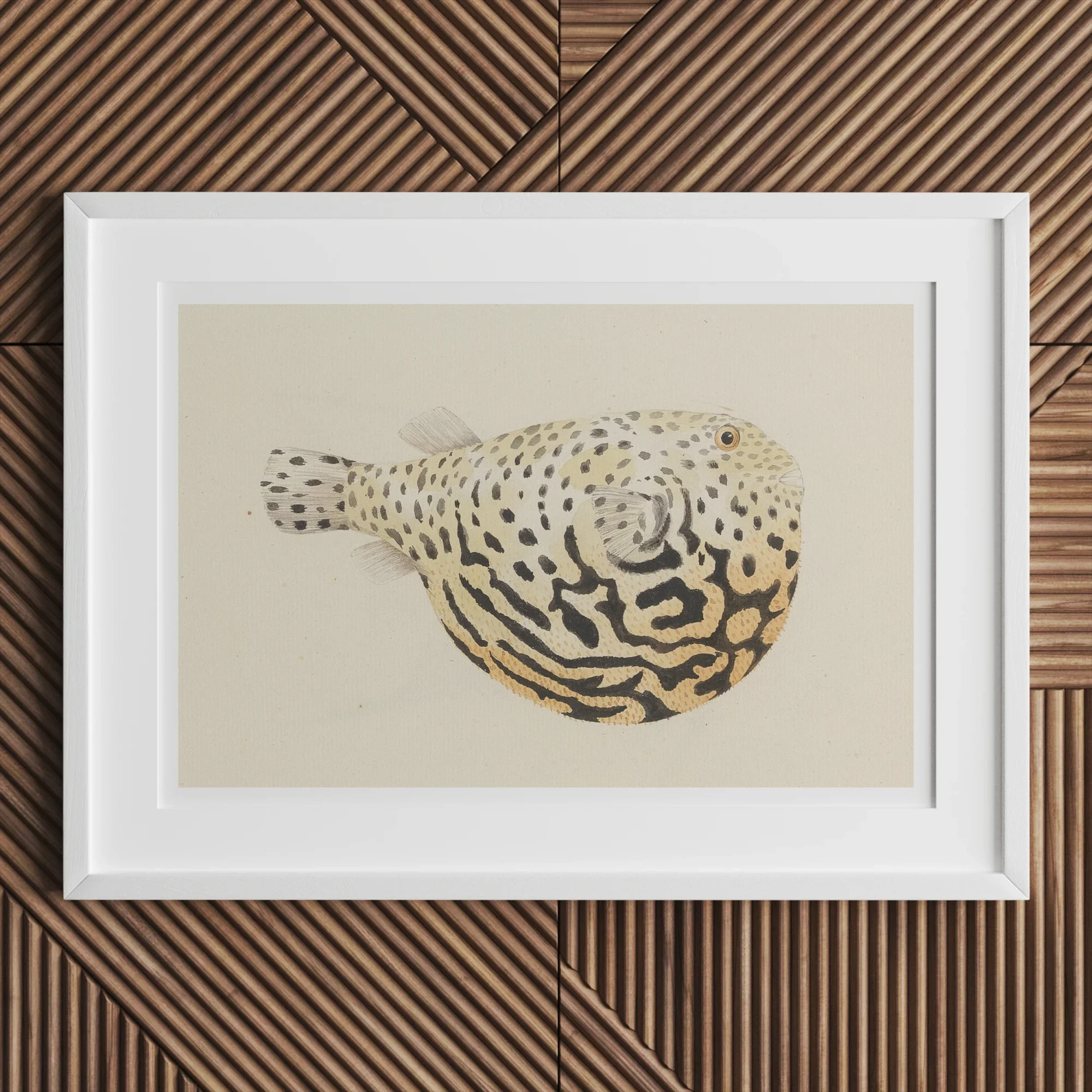 Vous serez accroché à ce charmeur gonflé du carnet de croquis de Marine de Luigi Balugani. Cette amende italienne du XVIIIe siècle imprimé art Présente un poisson-globe tacheté, son rotation est un témoignage de la fantaisie de la nature. L'œil vif de Balugani, perfectionné lors des expéditions africaines avec James Bruce, capture tous les détails - de la peau mouchetée de la créature à son regard interrogateur.