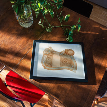 Cette impression de selle en cuir n'est pas seulement l'art - c'est une tranche d'histoire équestre qui deviendra un joyau de la couronne de votre intérieur inspiré de la ferme.