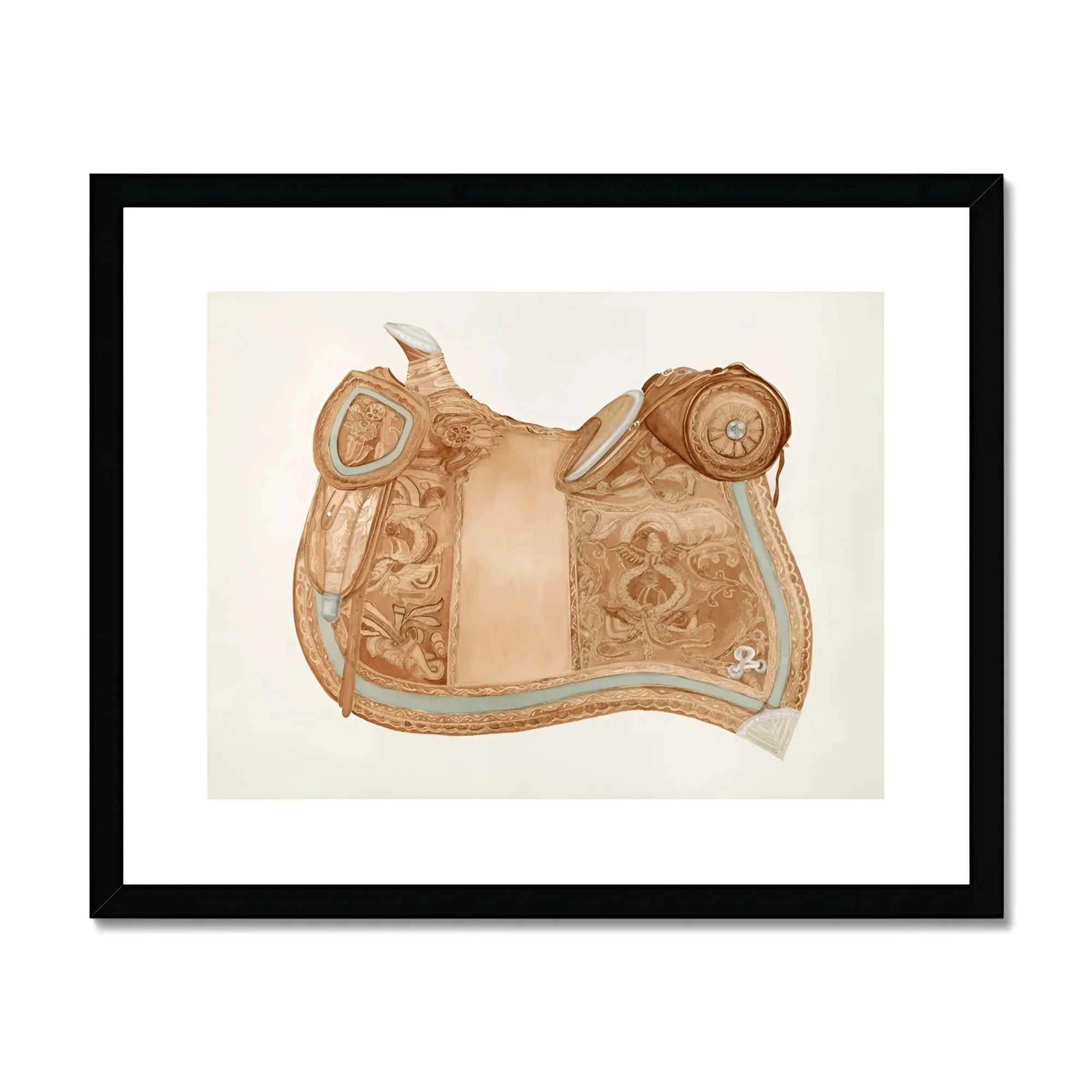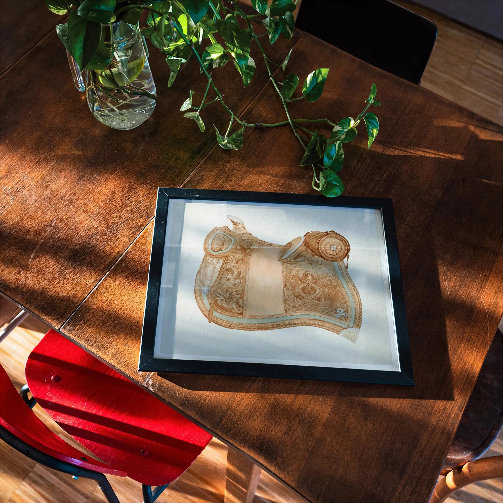 Vous serez transporté à l'âge d'or de l'élégance équestre avec ces années 1930 fascinantes imprimé art par Ranka S. Woods. Cette illustration exquise présente une selle en cuir magistralement fabriquée, son outillage complexe et ses détails ornés vous faisant signe de toucher la toile. Le cuir chaud et au miel semble briller sur le fond crémeux, invitant votre regard à s'attarder sur chaque point soigneusement rendu et s'épanouir.