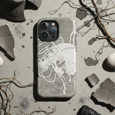 Ces coques de téléphone avec des motifs de crânes réimaginent la nature morte vanitas, l'anatomie ukiyo-e et la fièvre post-impressionniste en un rituel contemporain de toucher et de transmission. Votre appareil devient sanctuaire, miroir, confessionnal : une scène où la mort se déguise en design. Le clair-obscur néerlandais côtoie l'austérité de l'encre Edo ; l'esprit macabre entre en collision avec la sensualité surréaliste. Chaque crâne—qu'il soit souriant, couronné ou se dissolvant dans la chaleur ocre—porte l'écho de siècles de peintres et de graveurs qui ont poursuivi l'impermanence à travers le pigment, la fumée et l'ombre.