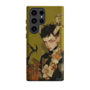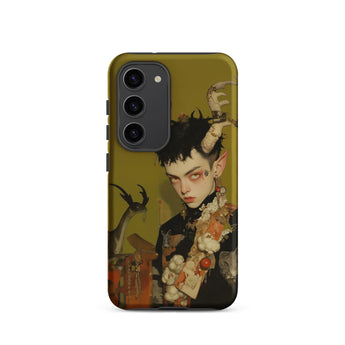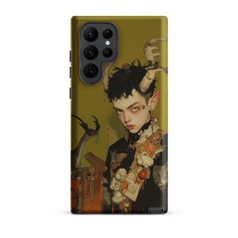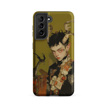 Le polycarbonate protecteur rencontre une impression de qualité galerie dans cette coque Samsung. Scellant cette vision couronnée de cornes dans une brillance durable pour votre appareil, un autel portable à la rébellion, à la beauté et au désir dangereux.