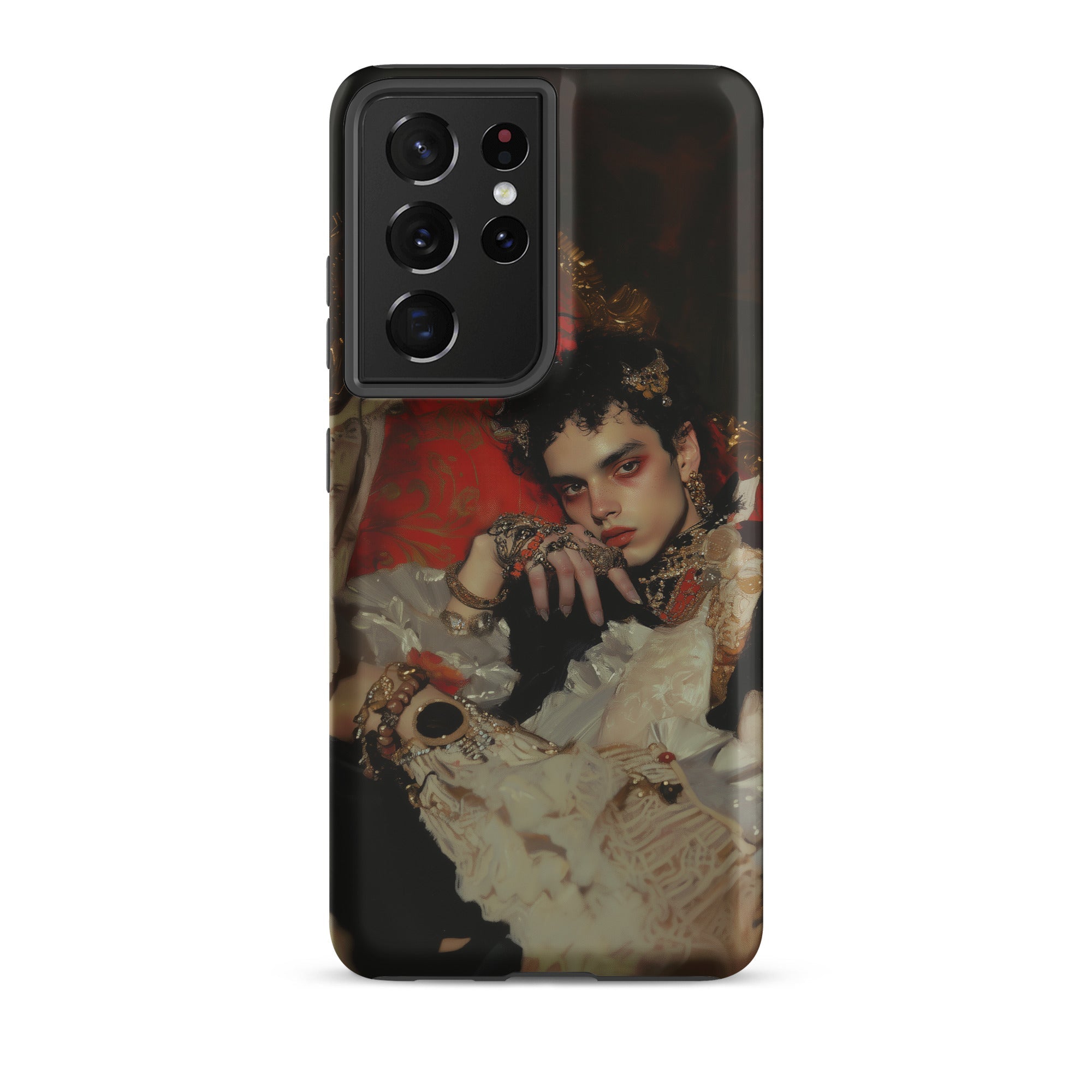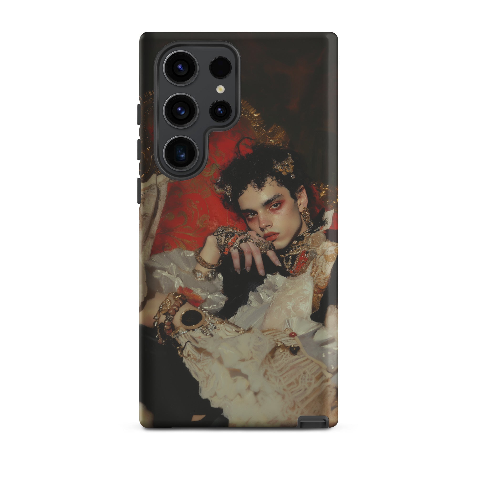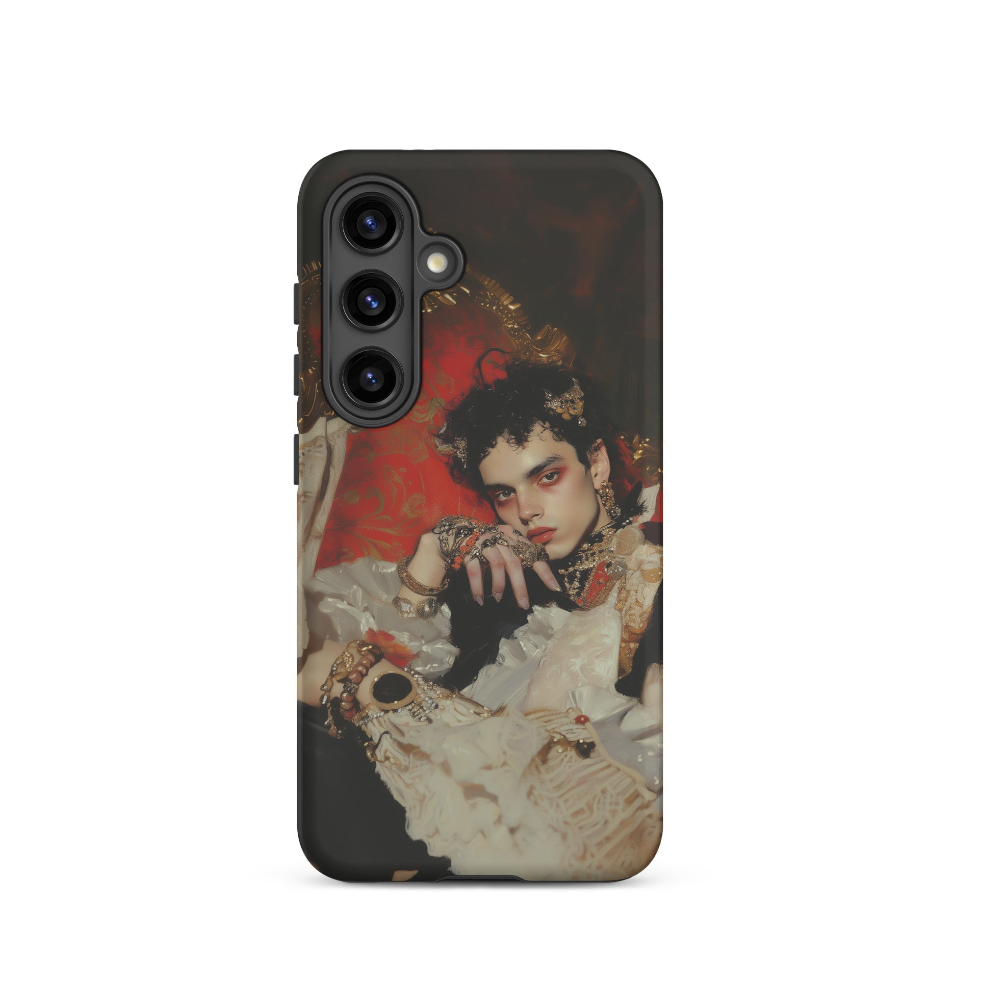 Ce roi vampire étrange n'est pas un pâle fantôme d'antiquité. Il est le pouls fiévreux de la décadence immortelle, enveloppé de brocart, de dentelle et de l'odeur de vin de grenade renversé. Votre Samsung devient sa cour, chaque regard sur votre étui étant une convocation à entrer dans son domaine. Ici, le temps n'est ni linéaire ni miséricordieux ; il s'enroule, attend et vous boit lentement, ne laissant que le goût de l'éternité sur votre langue.