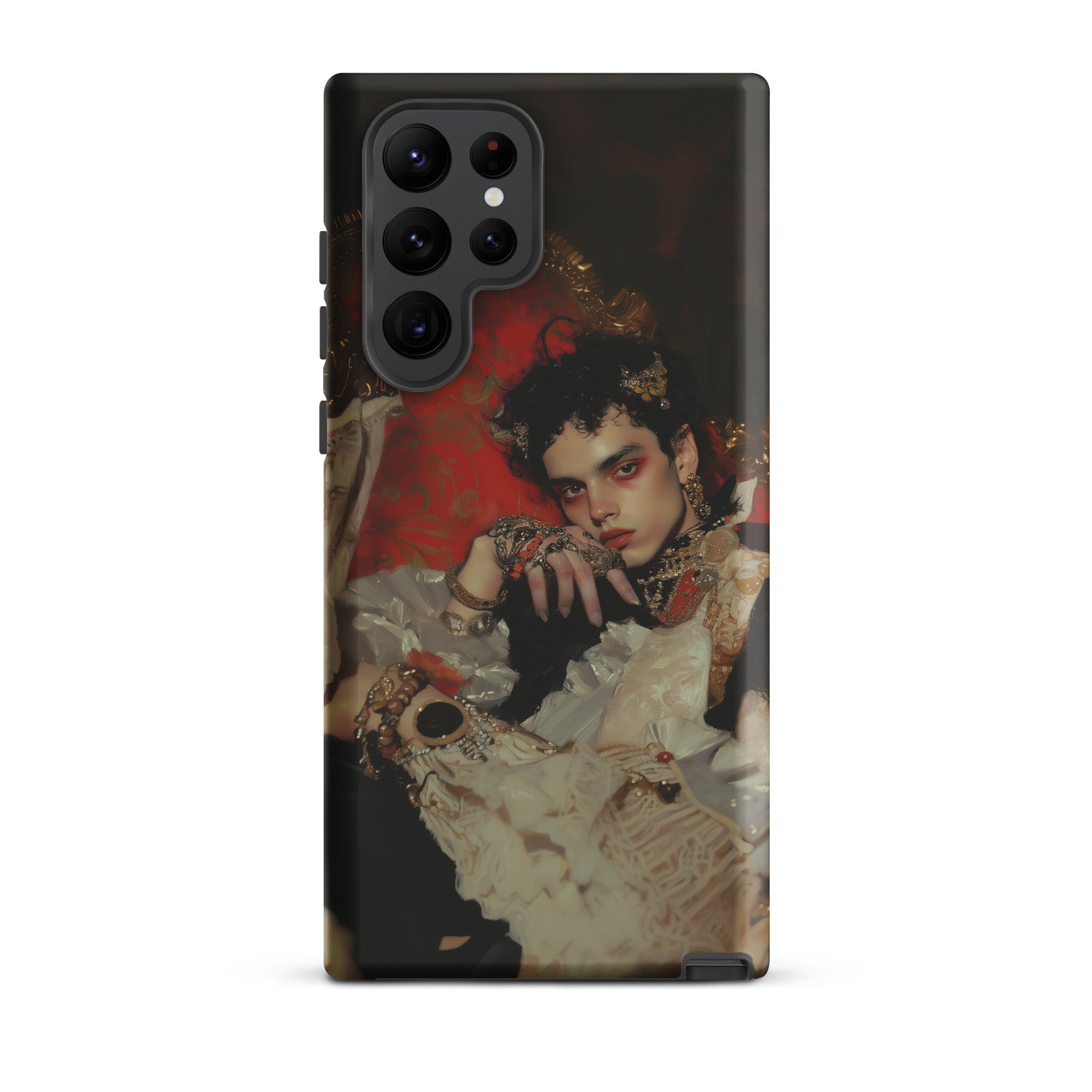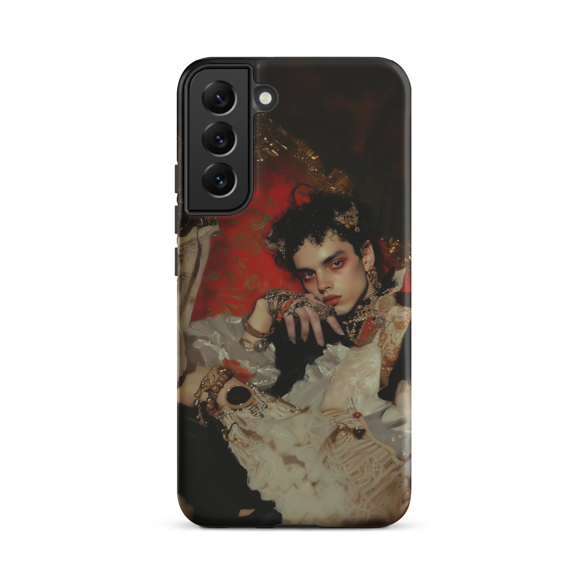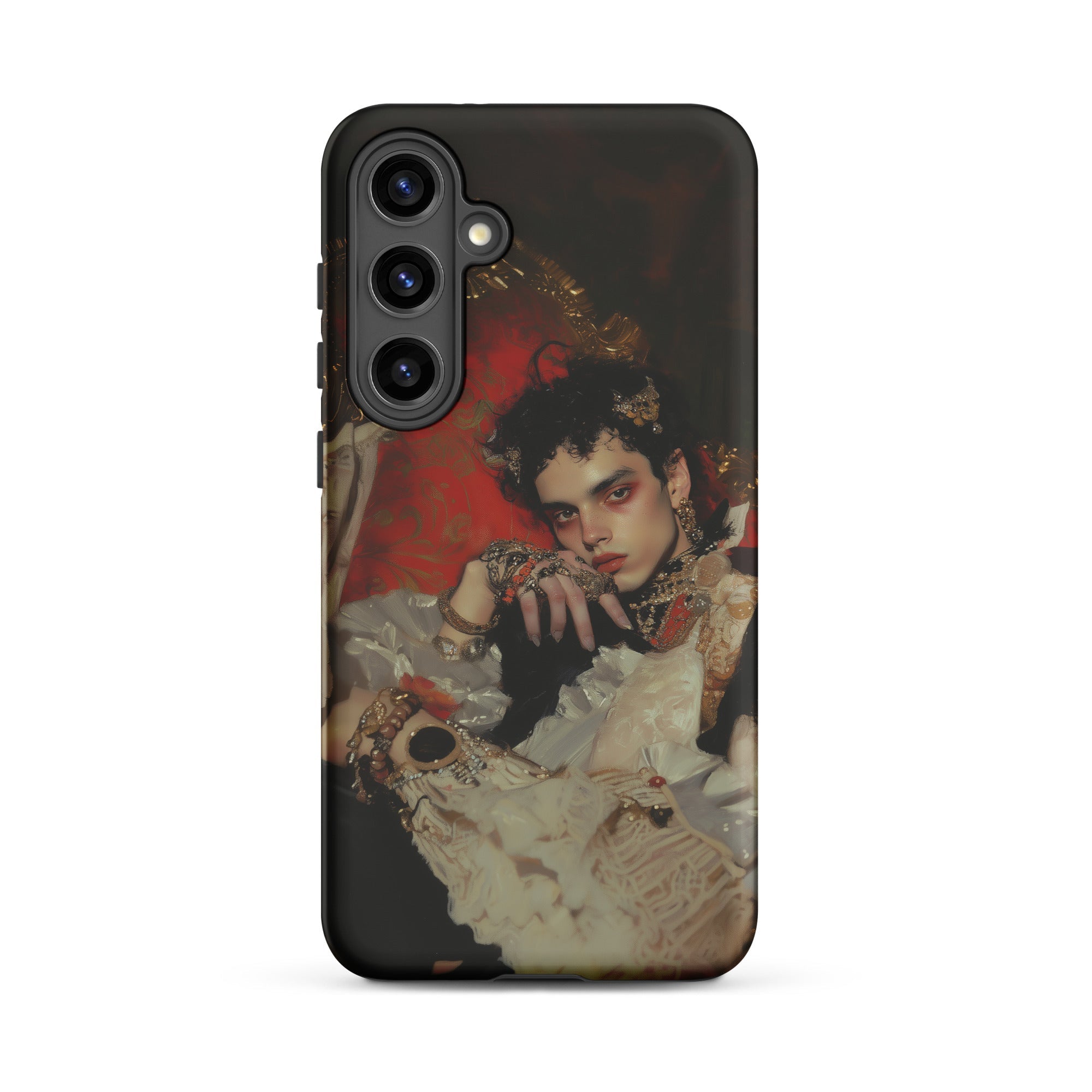 Ce roi vampire étrange n'est pas un pâle fantôme d'antiquité. Il est le pouls fiévreux de la décadence immortelle, enveloppé de brocart, de dentelle et de l'odeur de vin de grenade renversé. Votre Samsung devient sa cour, chaque regard sur votre étui étant une convocation à entrer dans son domaine. Ici, le temps n'est ni linéaire ni miséricordieux ; il s'enroule, attend et vous boit lentement, ne laissant que le goût de l'éternité sur votre langue.