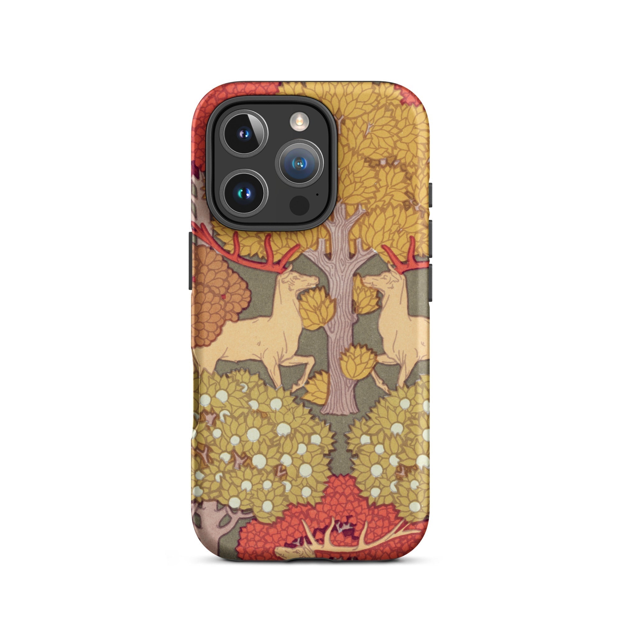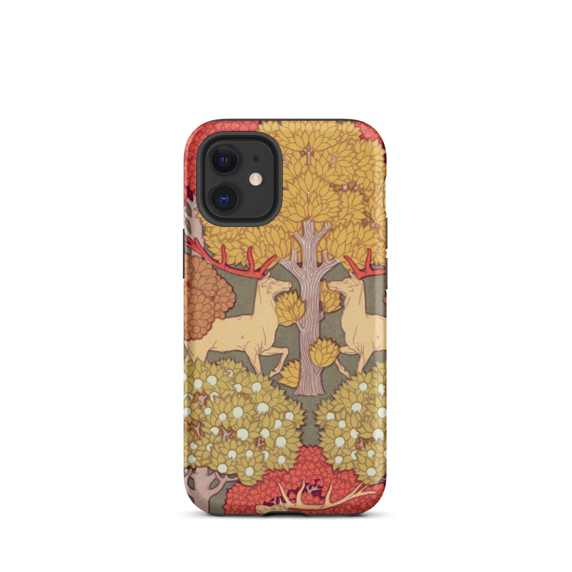 Élevez votre iPhone avec les "Cerfs et Arbes" de Verneuil Art Nouveau Masterpiece, transformant votre appareil en un portail de poche vers l'Époque Belle. Cette affaire présente une tapisserie de cervides aux manches en cuivre, leurs bois écarlates atteignant le ciel au milieu d'un bosquet de feuillage miellé.
