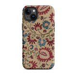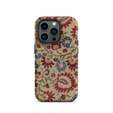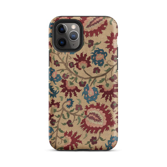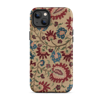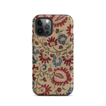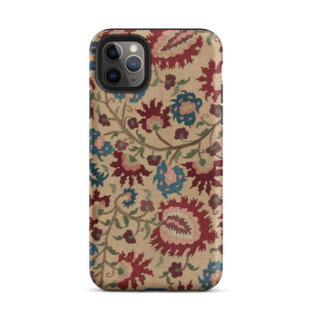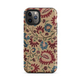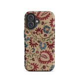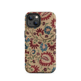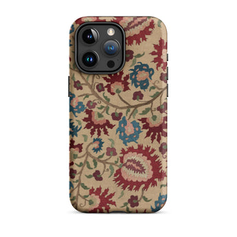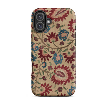 Cette coque d'iPhone est un porteur de murmures ancestraux : habillée des fantômes florissants de linges de mariage et de nappes imprégnées de mythe et de vin de mûrier. Une vigne d'œillets au sang vénitien s'enroule avec des arabesques ottomanes, se déployant à la surface comme une incantation folklorique—brodée non pas en fil, mais en permanence pixelisée.