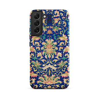 Cette coque Samsung porte un double héritage : la fantaisie de pagodes lointaines et de cours éclairées par la lune, distillée en un talisman portable à surface vitrée du réformisme du design du XIXe siècle et de l'ornementation interculturelle.
