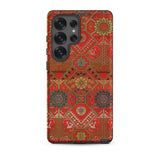 Cette coque Samsung devient une galerie portable, traduisant les motifs historiques en une coque protectrice. Chaque courbe, pétale et bordure reflète la précision de la chromolithographie, où les fonds écarlates intensifient les accents ocre, émeraude et lapis.