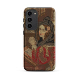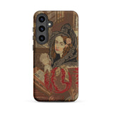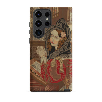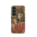 Cette coque Samsung transforme le tableau dévotionnel en un artefact portable, fusionnant la broderie du XIXe siècle, l'architecture médiévale et le portrait historique en une coque protectrice pour la technologie moderne, équilibrant la chaleur de l'artisanat avec la gravité architecturale.