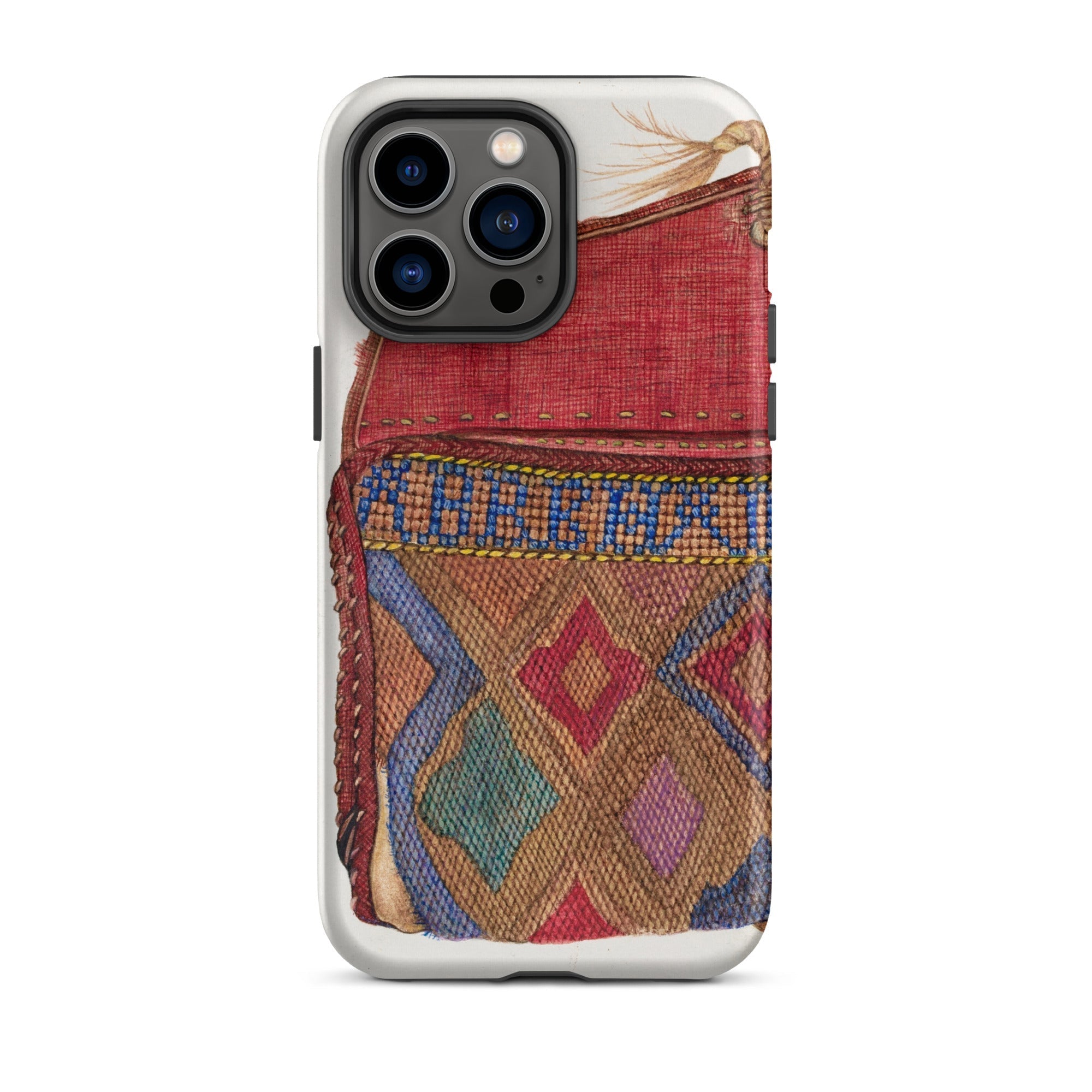 Cette coque iPhone est un portail—un artefact renaissant, où l'esprit de la mode des années 1930 entre en collision avec l'artisanat intemporel. Inspiré par les esthétiques de l'ère de la Dépression de Norma Lockwood, ses motifs textiles richement tissés évoquent la résilience et l'art du passé.