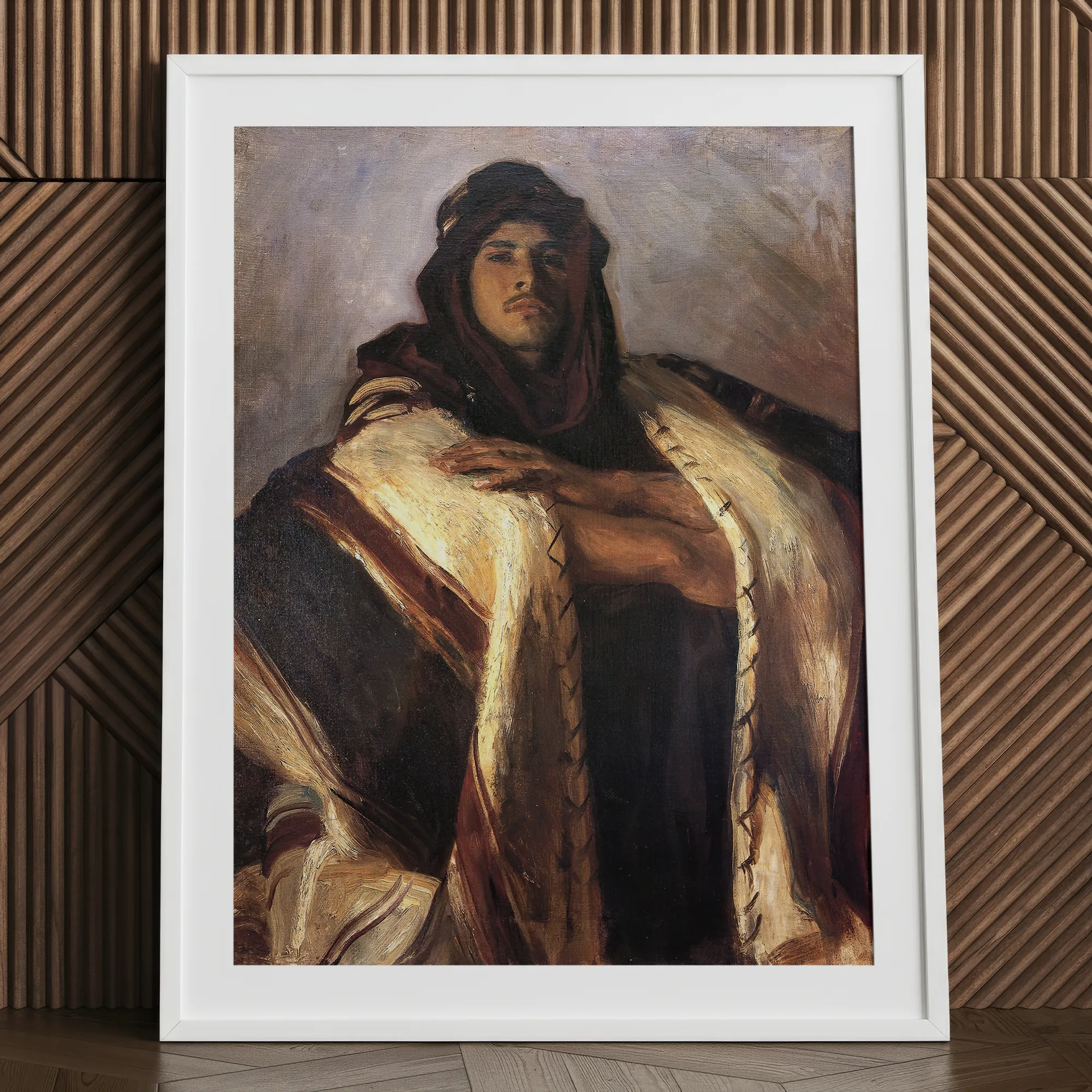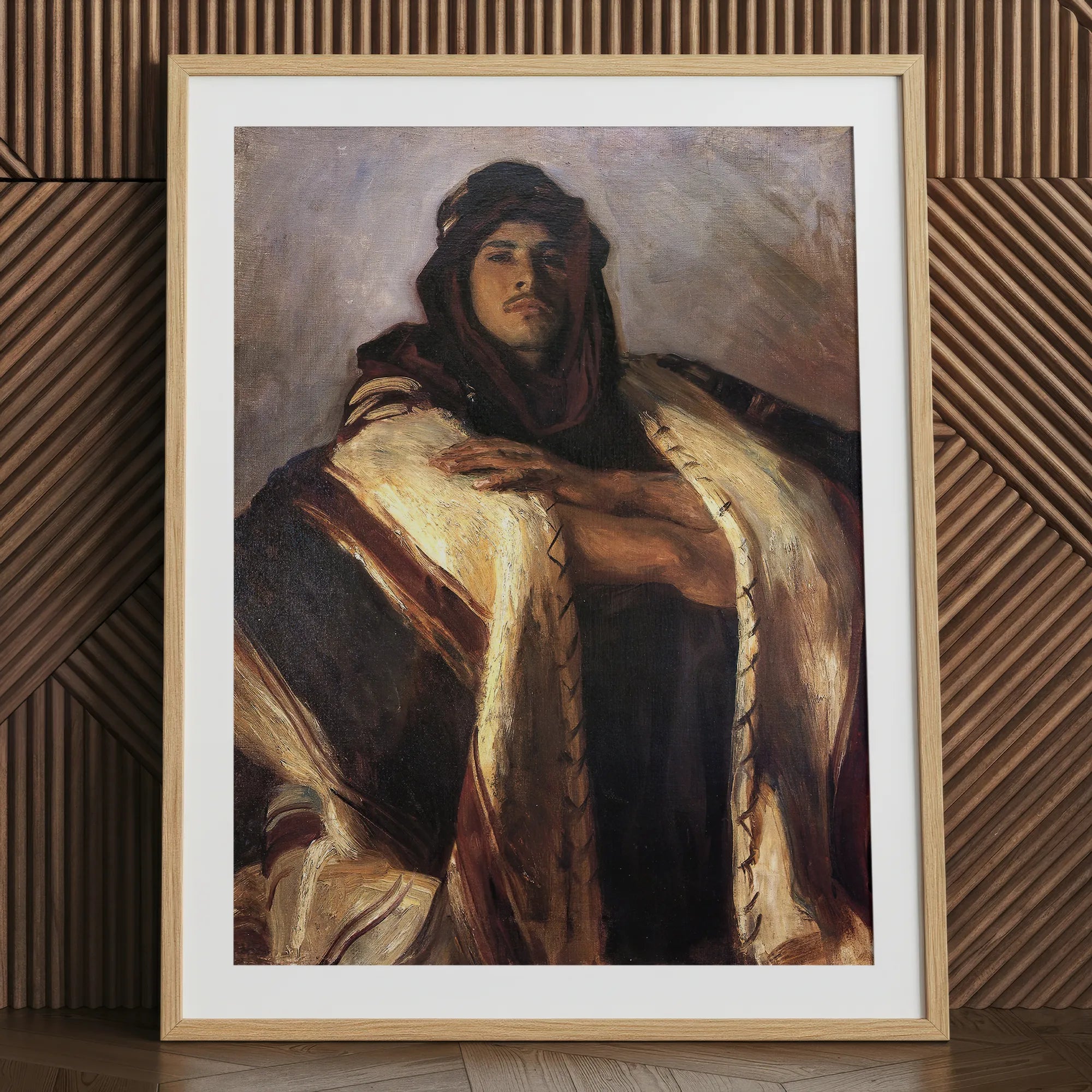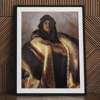 Dans Bedouin Chief par John Singer Sargent, la toile dégage une présence imposante, capturant l'esprit indomptable et la prestance royale de son sujet. Drapé dans des robes volumineuses et richement texturées, le chef bédouin se tient avec une aura d'autorité tranquille, ses yeux sombres perçant sous un front fier et digne.