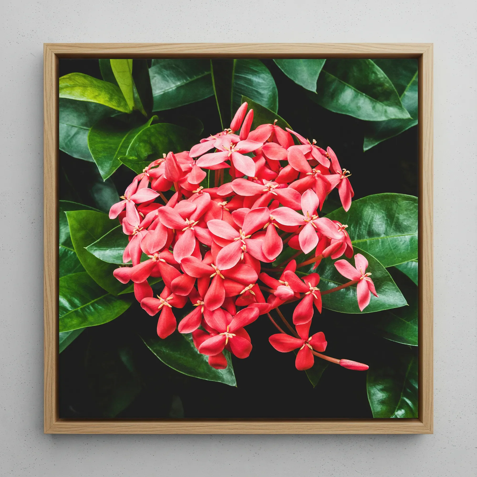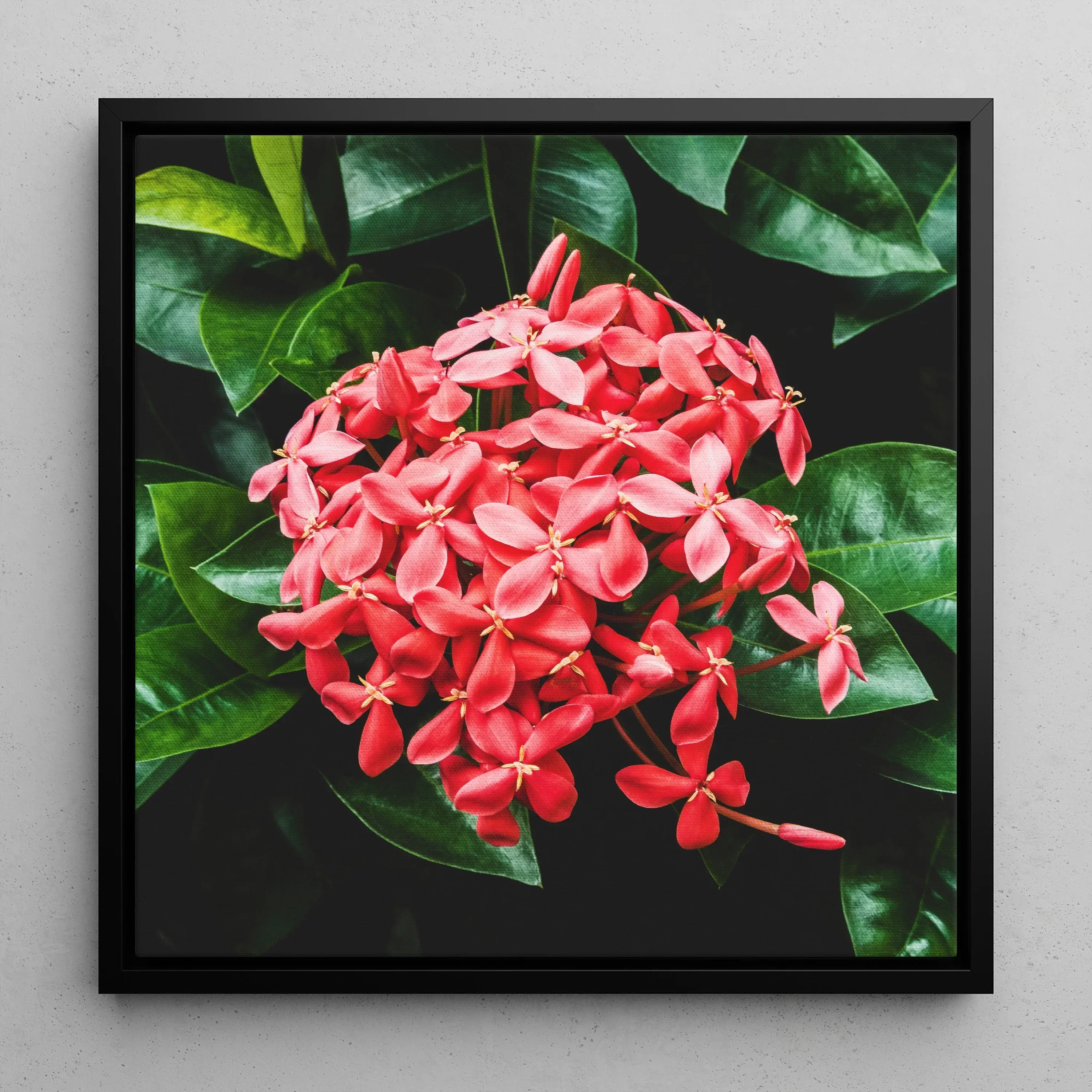 La * Belle de la balle - Tree à flamme des bois sur toile encadrée * résume l'élégance dramatique de l'Ixora chinois, offrant une pièce maîtresse audacieuse et sophistiquée pour n'importe quelle pièce.