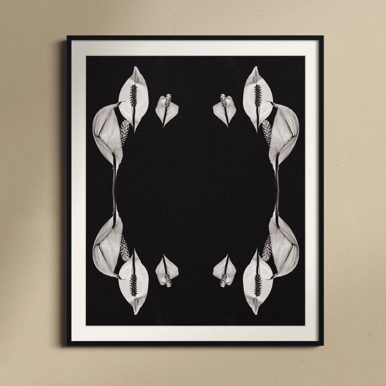 Vous serez envoûté par cette fantasmagoria monochromatique, où les lys de paix se métamorphosent en sentinelles spectrales du subconscient. Ce Koh Chang imprimé art Élève la photographie botanique à des hauteurs psychanalytiques, évoquant les coups d'encre de Rorschach à travers la propre conception de la nature.