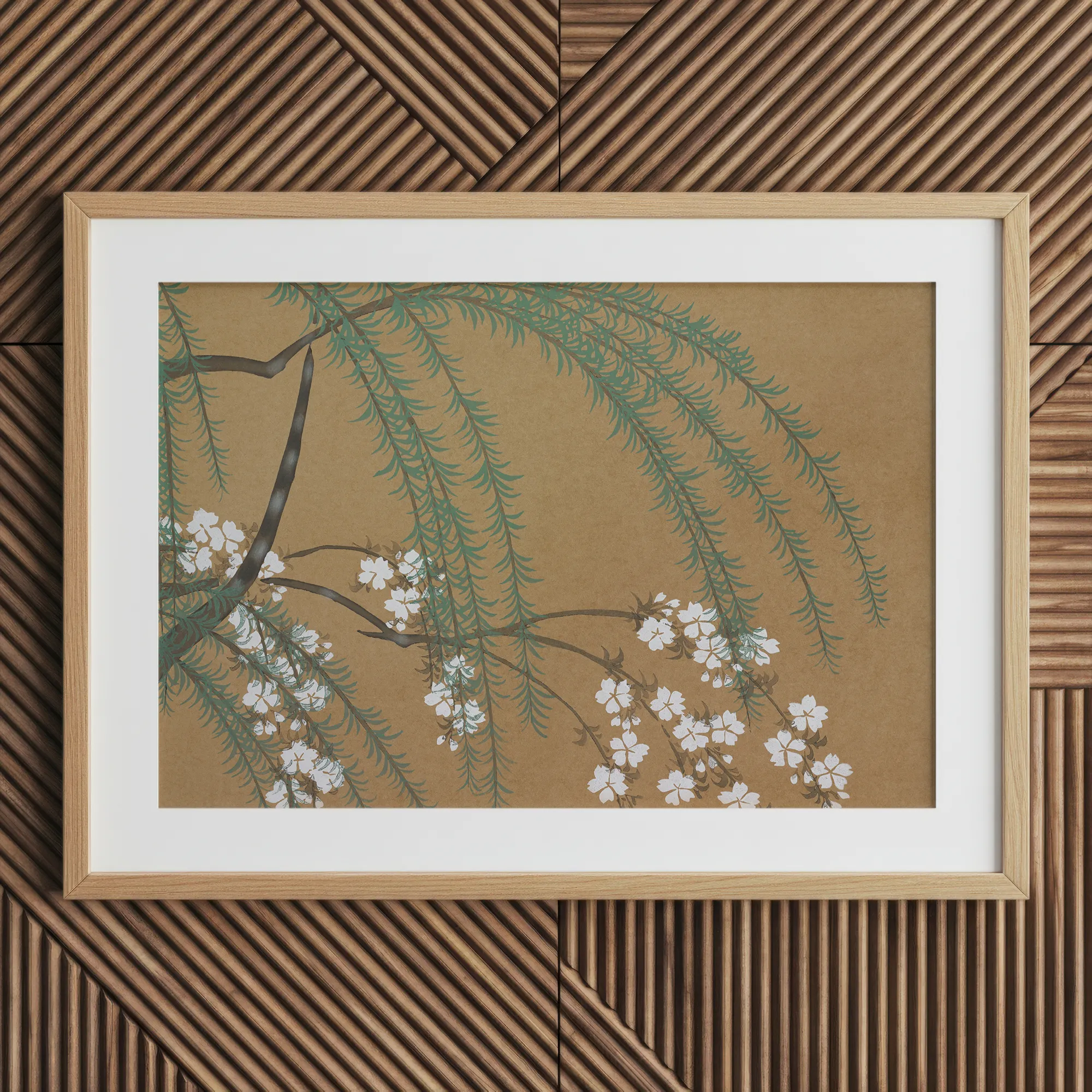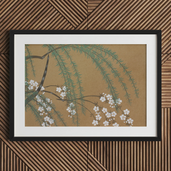 L'artisanat méticuleux de Sekka brille dans chaque coup de pinceau, de la veine délicate des feuilles aux pétales de fleurs minces. Cette impression illustre le Rinpa L'accent mis par l'école sur les lignes fluides et la beauté naturaliste, tandis que sa palette retenue et sa conception asymétrique parlent de l'esprit innovant de Sekka.