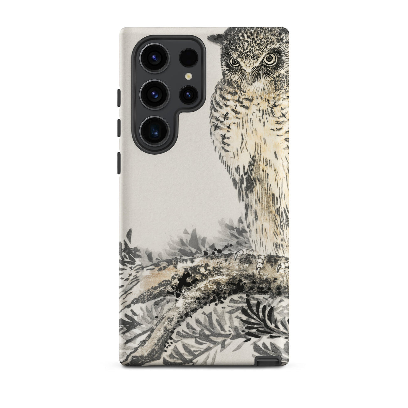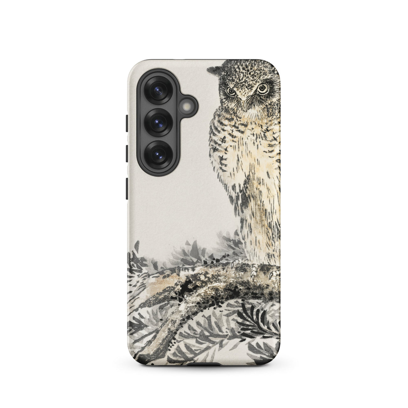 La sensibilité Edo-to-Shōwa de Kashu fusionne la précision naturaliste japonaise avec une palette restreinte de charbon, d'ocre et d'ivoire doux comme du papier. Cette coque Samsung tenant le moment comme si c'était de l'écorce et des plumes pressées entre les paumes—protectrice, inébranlable, exacte.