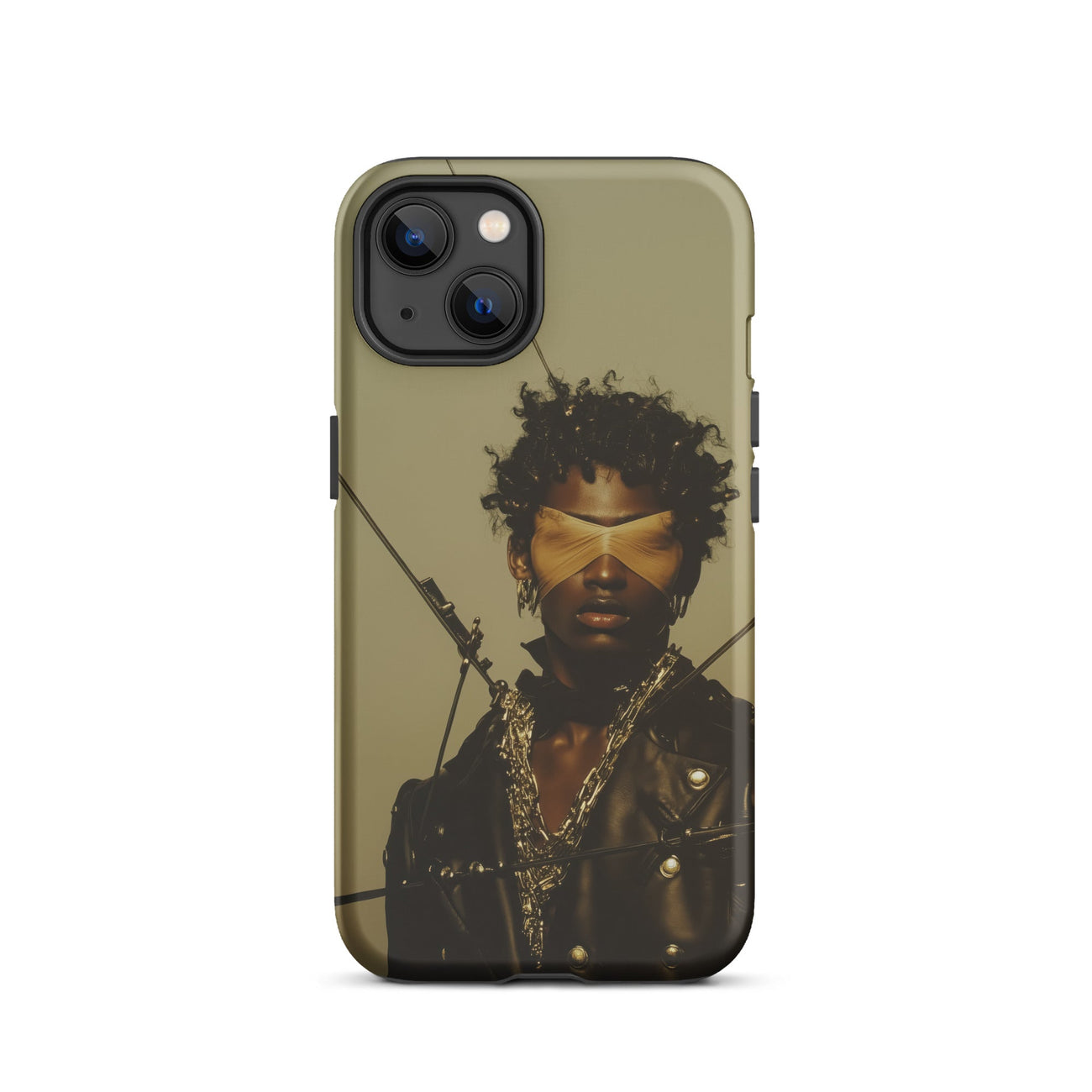 Ses visions hors-la-loi prospèrent sur le style comme contre-arme. Portant un bandeau comme des zones de blackout dans le flux de données. C'est de la soie ocre de la couleur d'un témoignage retenu et de la lumière du sol d'un club de sexe. Serré sur les yeux comme si quelqu'un l'avait défié de créer un nouveau type de justice—une qui ne peut être poursuivie ou archivée.