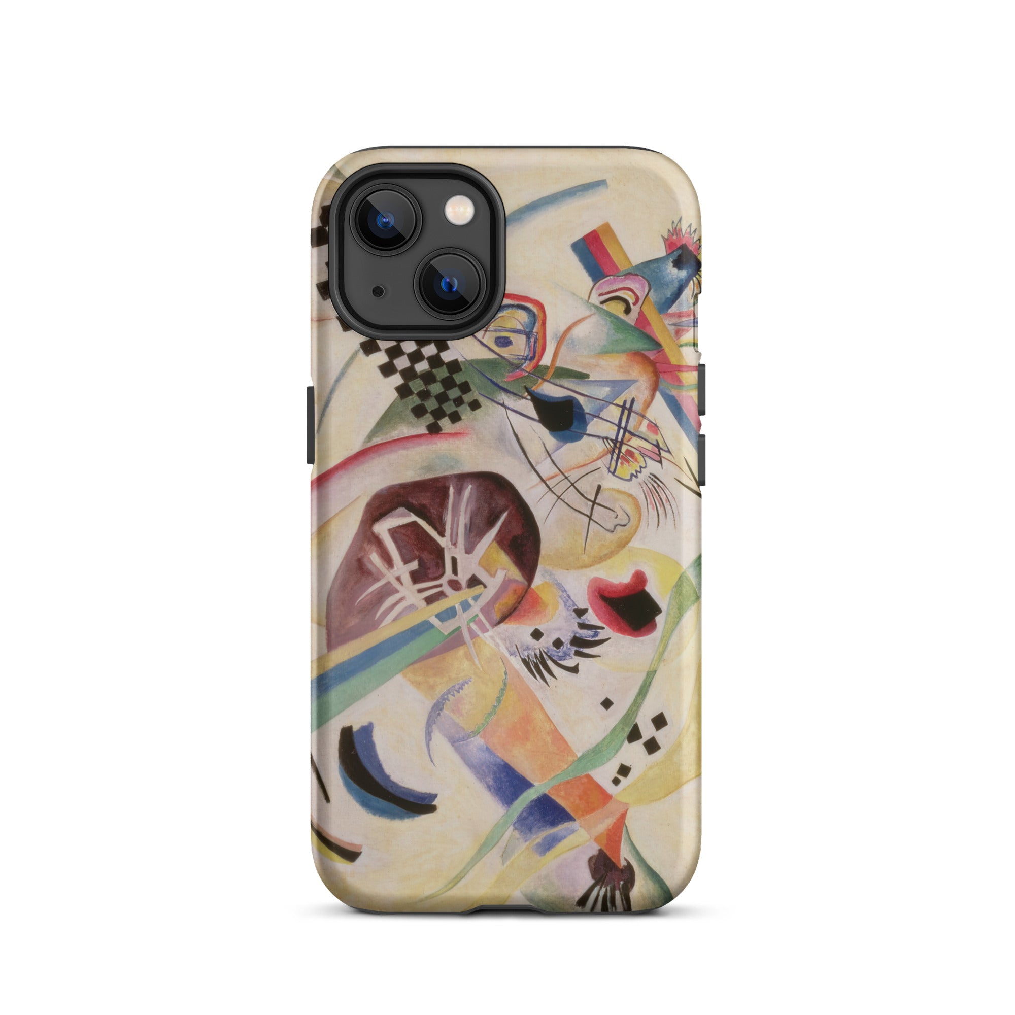 Portez l'improvisation de l'esprit dans votre paume, cette coque d'iPhone au design d'art synesthésique vibrant avec la théorie des couleurs émotionnelle et le mystère indompté de l'évangile visuel de Kandinsky.