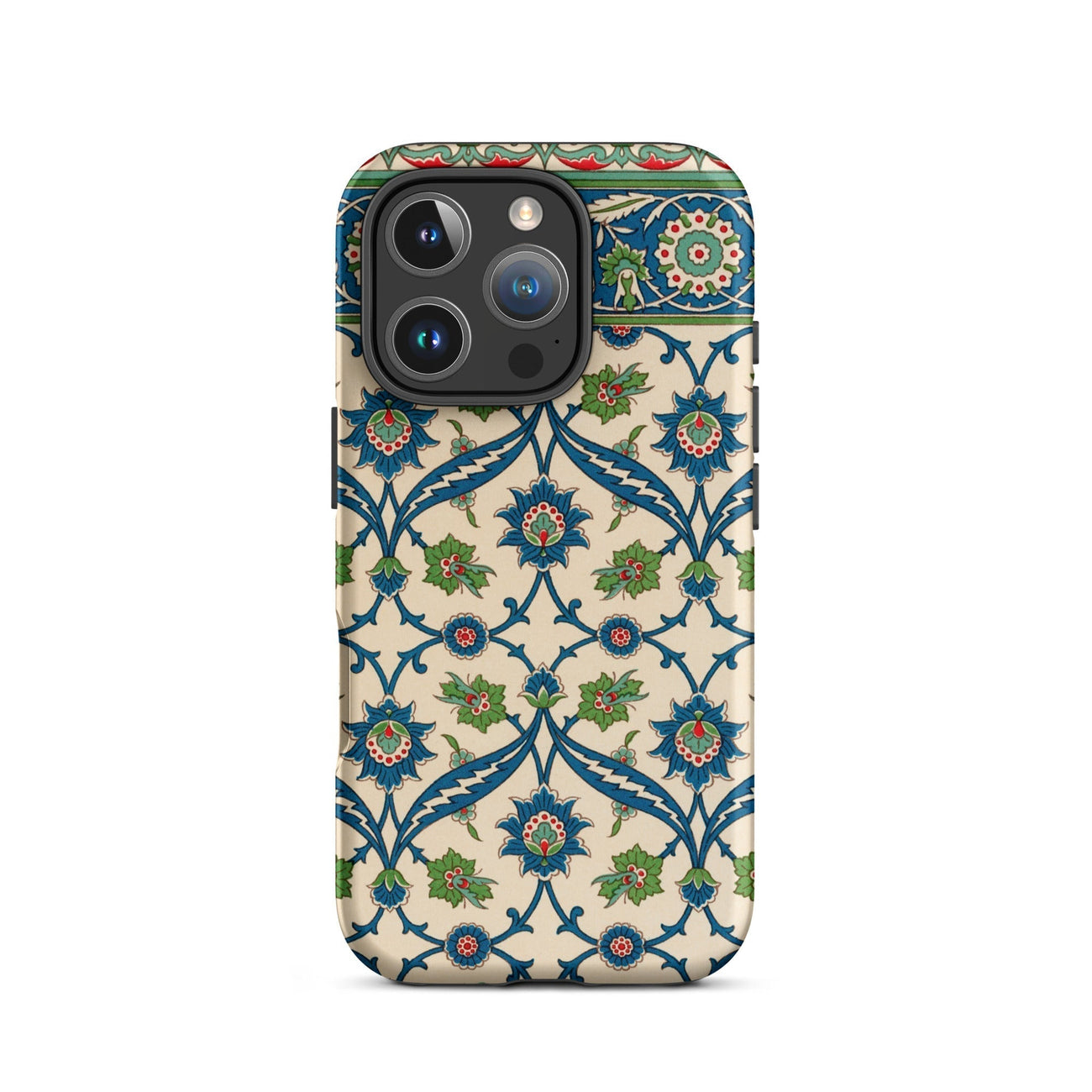Plongez dans le monde enchanteur de l'art islamique avec cela iPhone Case avec Émile Prisse D'Avennes "La Decoration Arabe". Ce chef-d'œuvre transforme votre appareil en un trésor Mamluk miniature, évoquant les intérieurs opulents des grandes mosquées et palais du Caire.