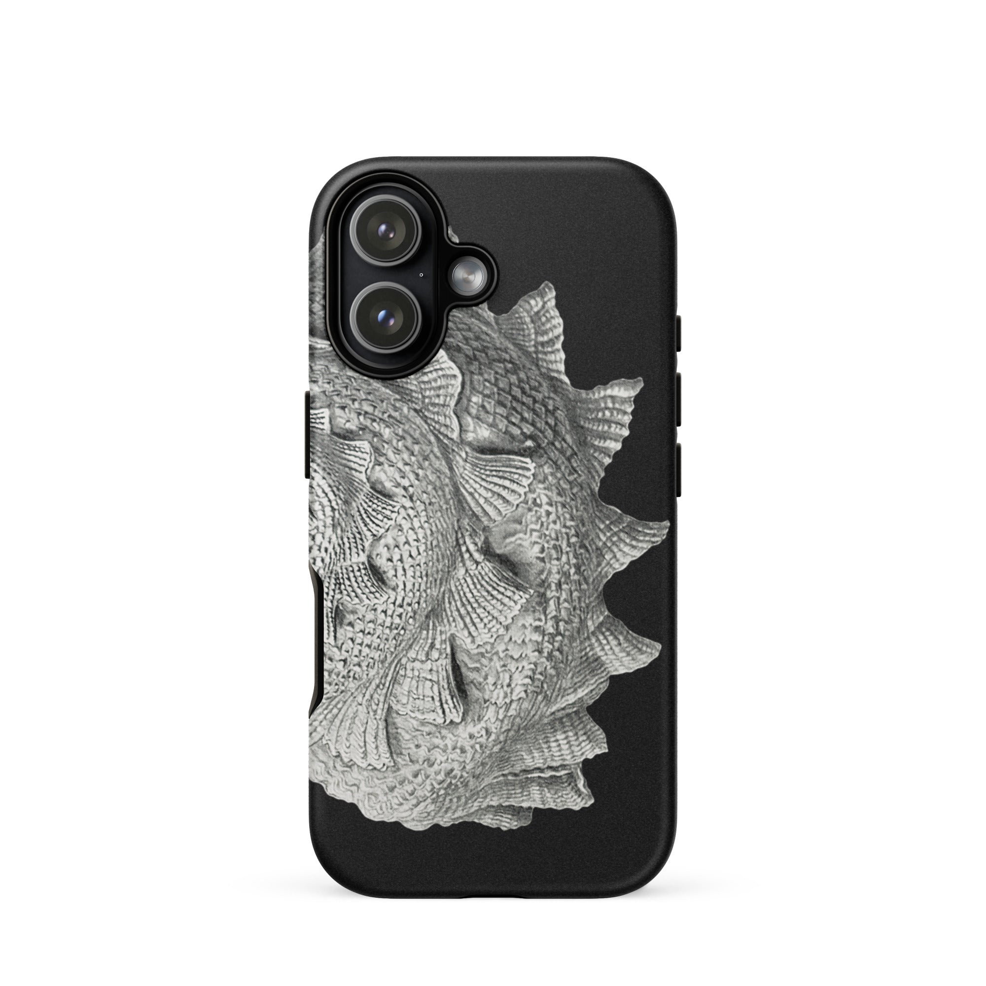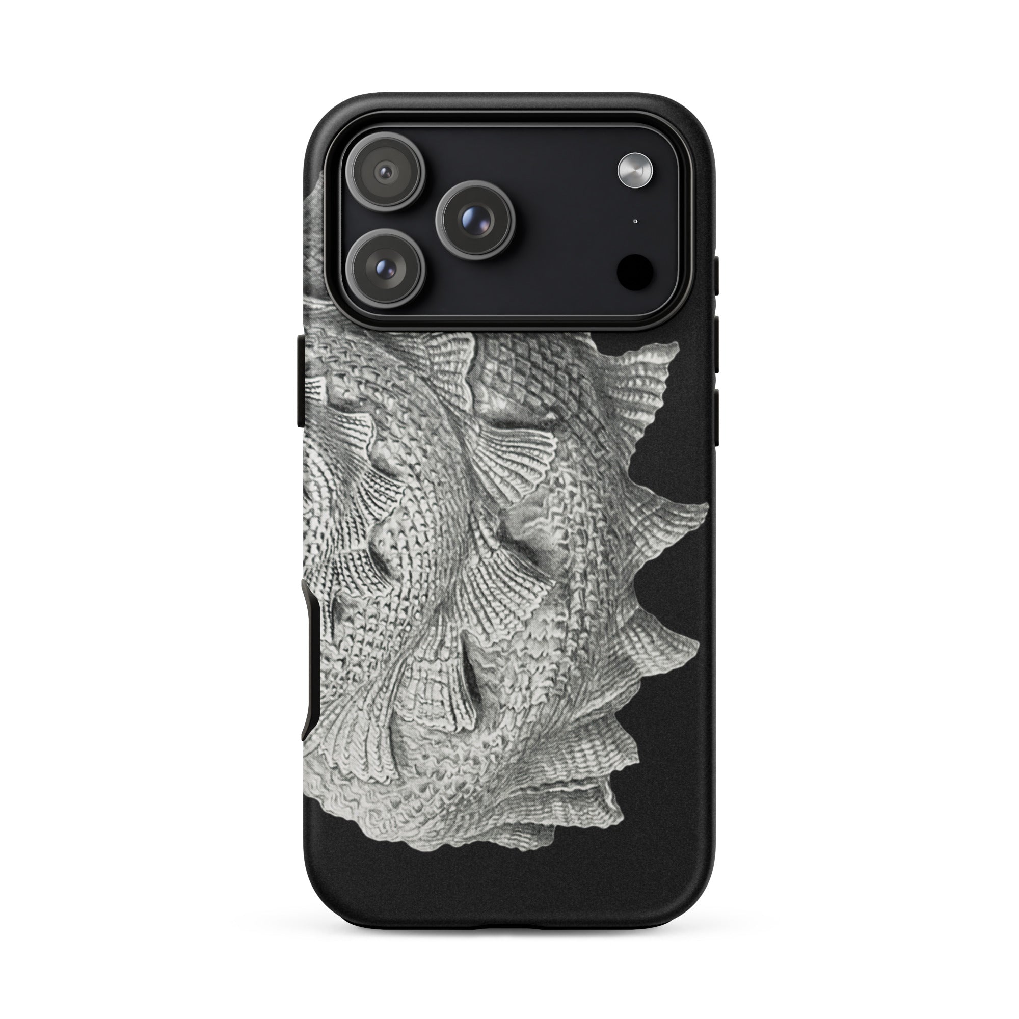 Une relique des profondeurs, une spirale figée dans le temps—cet étui pour iPhone représentant la vie marine d'Ernst Haeckel transforme votre appareil en un artefact de la précision de la nature. Tourbillonnant dans une symétrie hypnotique, la coquille complexe rayonne d'une élégance fossilisée, ses crêtes texturées projetant des ombres contre le noir abyssal. Chaque gravure délicate, chaque fractale organique murmure de la main méticuleuse de l'évolution, capturée dans l'art scientifique de Haeckel.