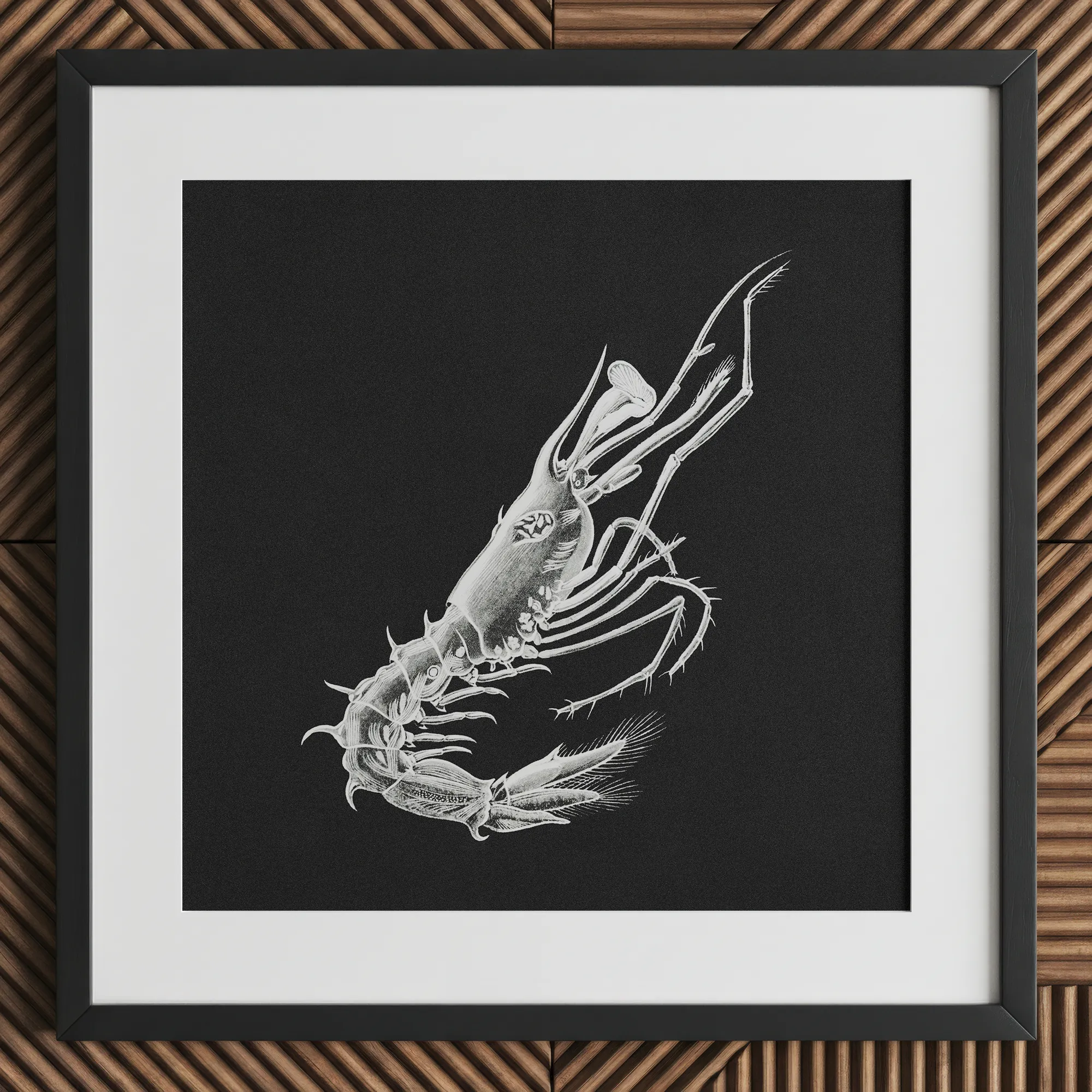 Voici, un spectre crustacé se matérialise des profondeurs d'encre! Cette crevette Ernst Haeckel imprimé art Va métamorphose vos murs en un rêve de fièvre du naturaliste du XIXe siècle.