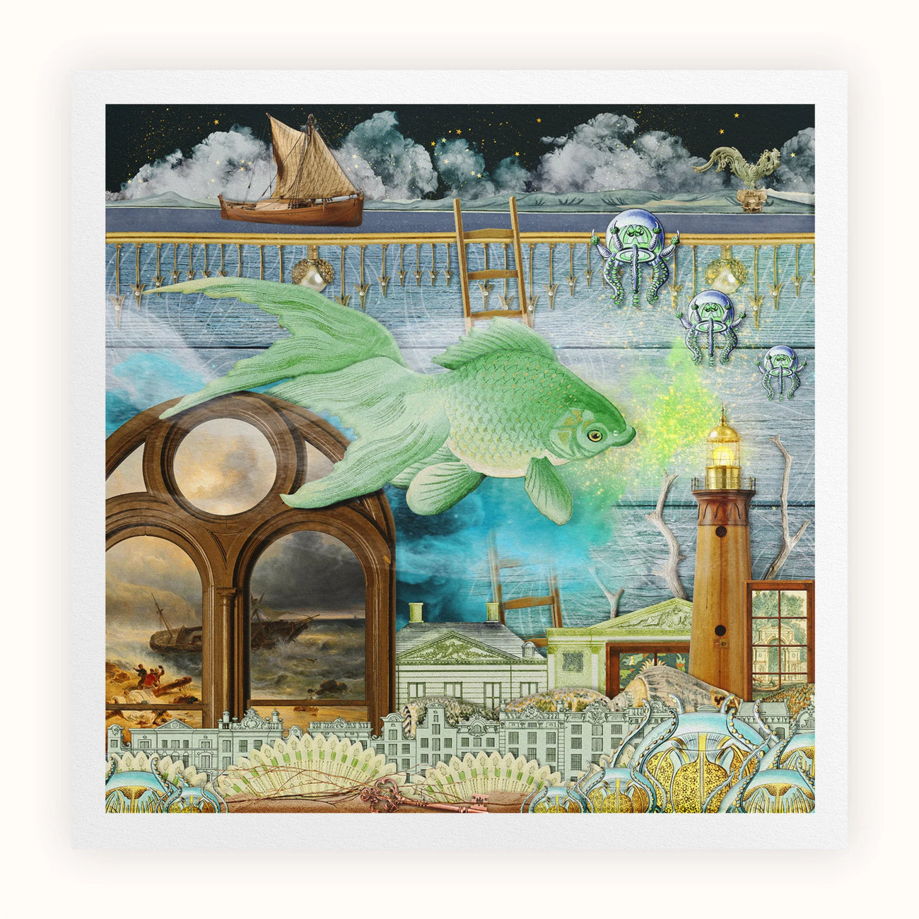 Down où il est plus humide PT 1 - Print d'art de collage de poisson surréaliste