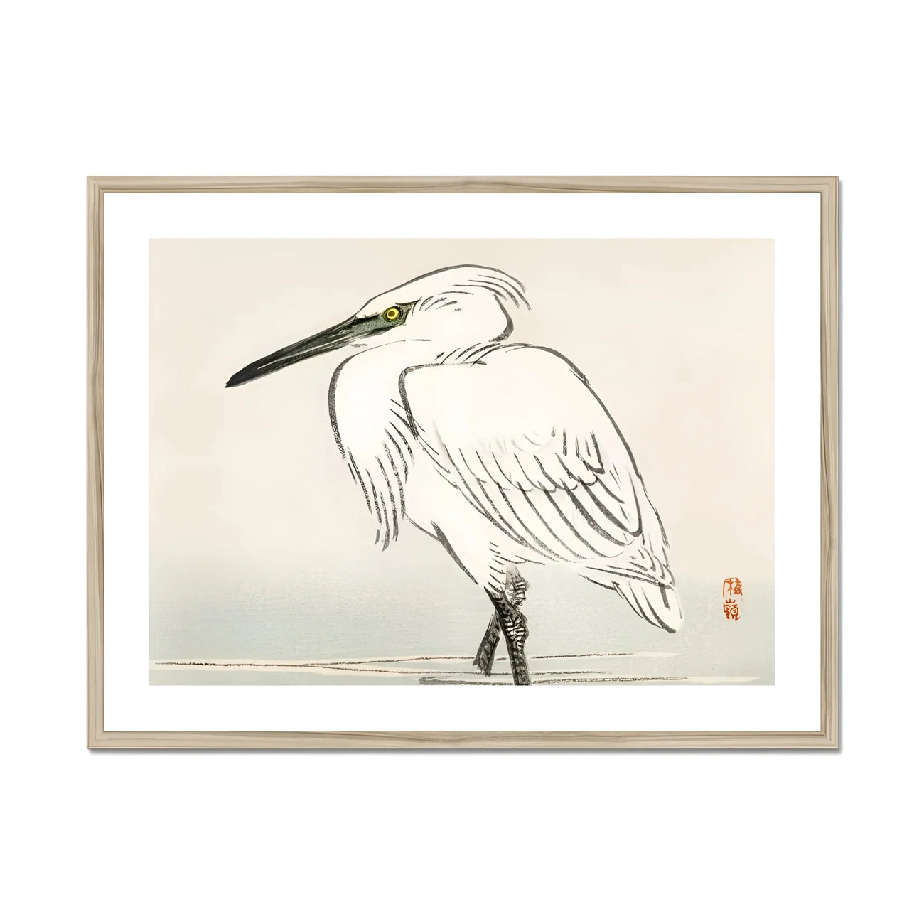 Le pinceau magistral de Bairei donne vie à l'egret, chaque plume rendue avec une précision exquise. Le oiseauLes yeux jaunes perçants et le bec noir de jart offrent un contraste frappant avec son plumage blanc immaculé.