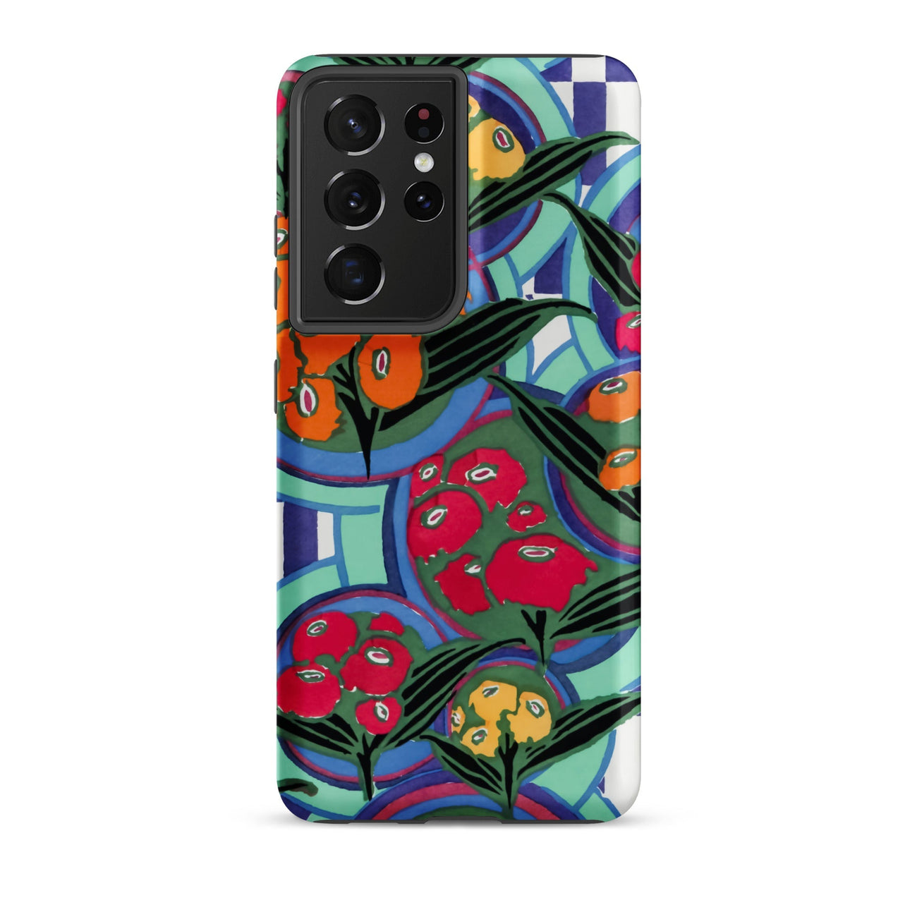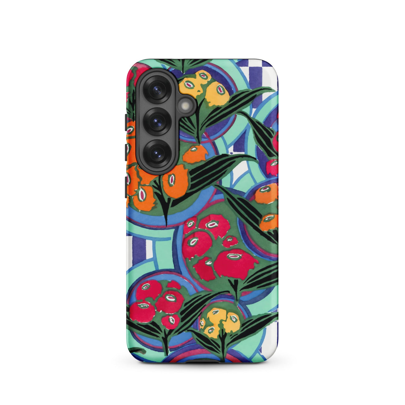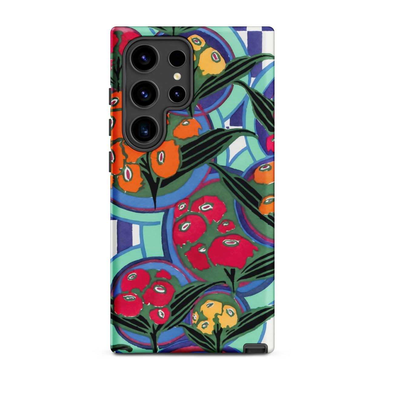 Chaque contour vibre avec la précision de l'Art Déco, mais la surface déborde d'une exubérance fauviste. Le rythme en couches de l'impression évoque le design textile, l'illustration botanique et le travail de motifs ornementaux du début du 20e siècle, transposés ici pour un bouclier moderne de Samsung. Les pigments saturés et les silhouettes délimitées canalisent les techniques de pochoir, apportant le pouls chromatique du jardin dans votre paume.