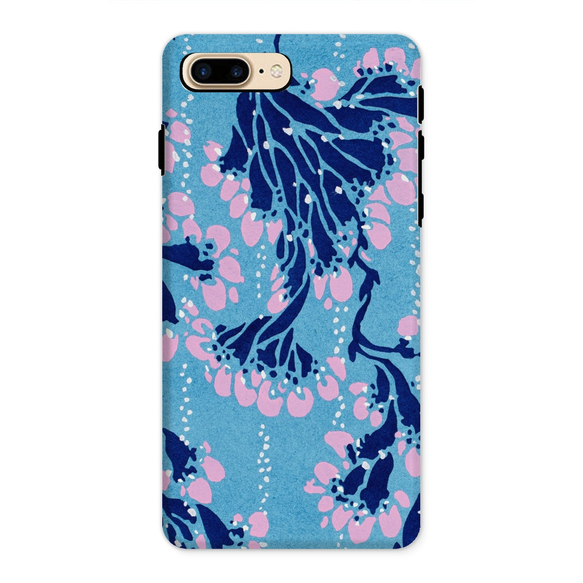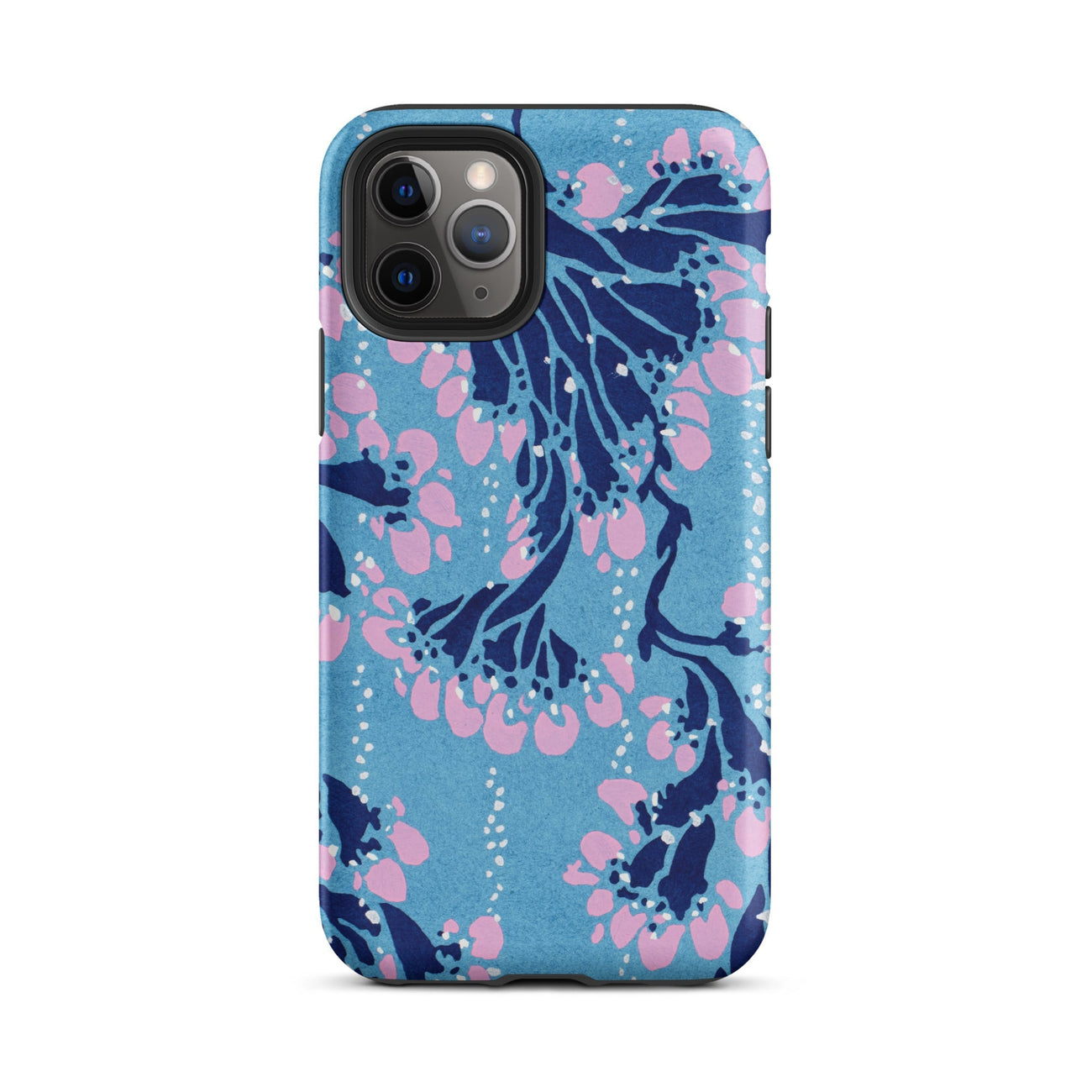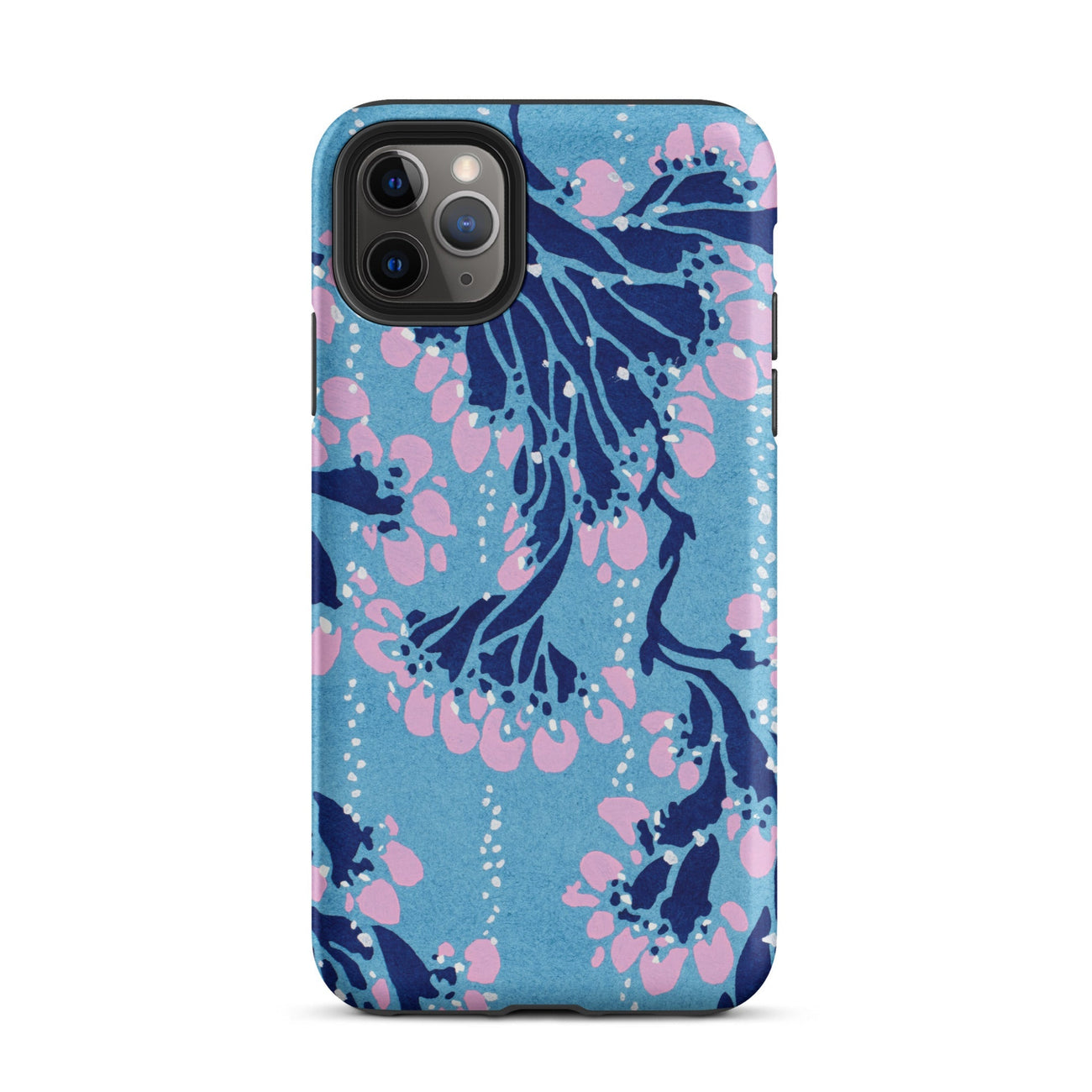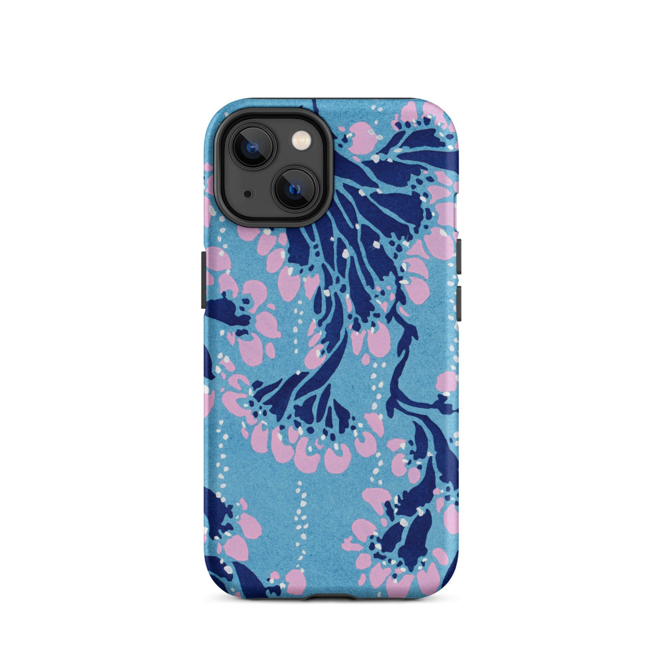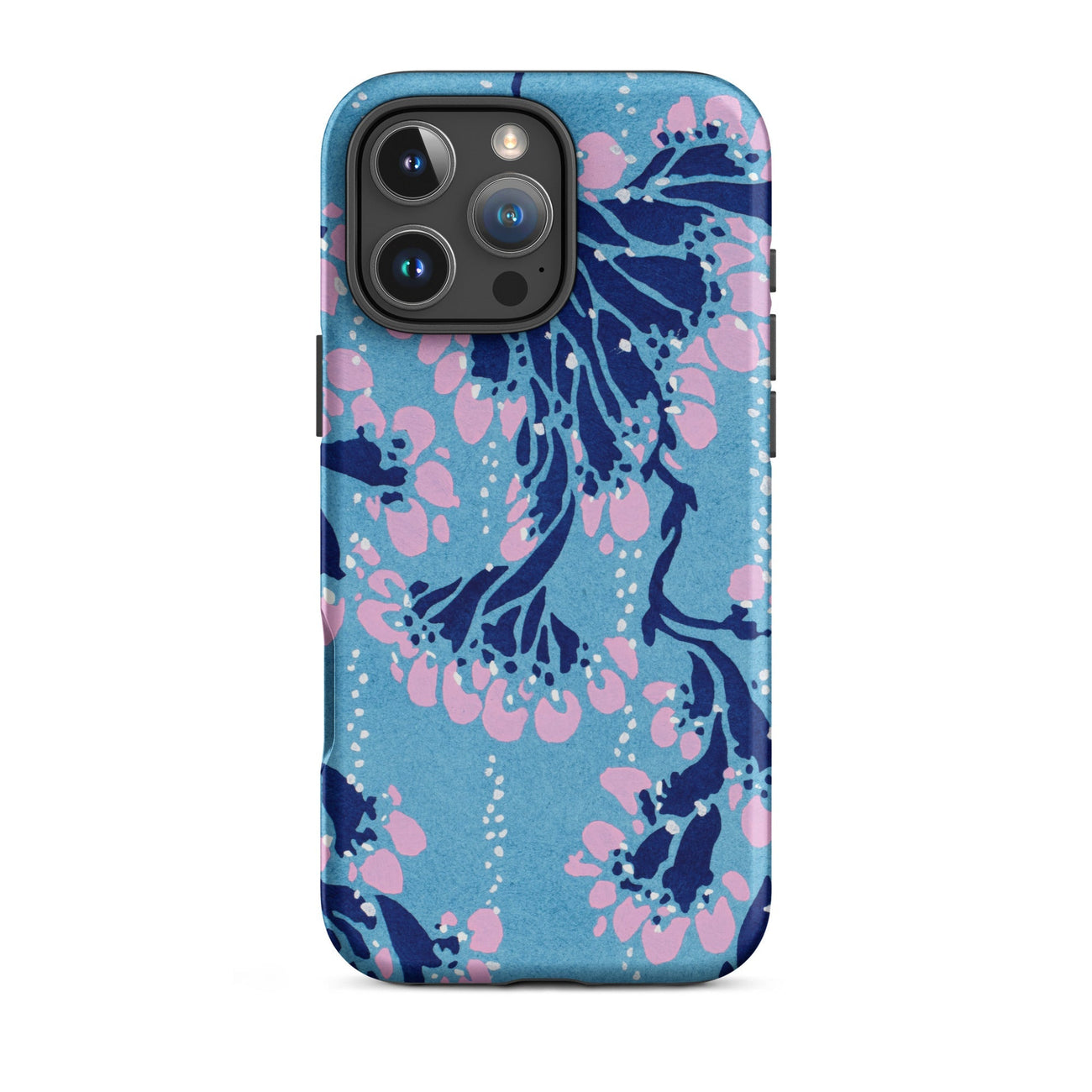 Étui iPhone avec motifs floraux bleu et rose Pochoir - E.A. Seguy