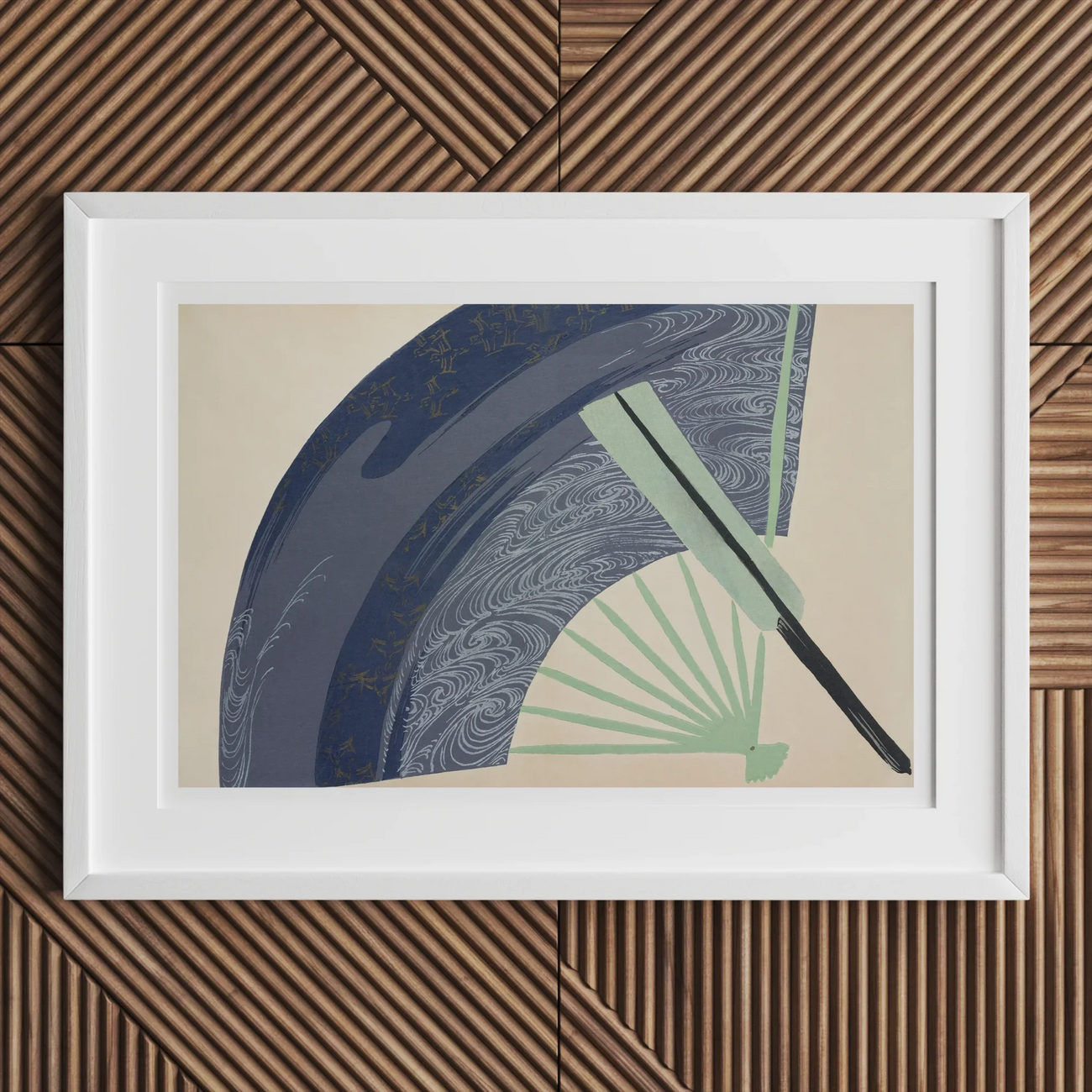 Transportez-vous dans le monde élégant du Japon de la période Meiji avec cette captivante estampe de Kamisaka Sekka représentant un éventail. En contemplant les courbes délicates et les motifs tourbillonnants, vous pourriez ressentir la brise fraîche d'une soirée d'été ou entendre le doux bruissement des kimonos de soie dans un jardin au clair de lune.