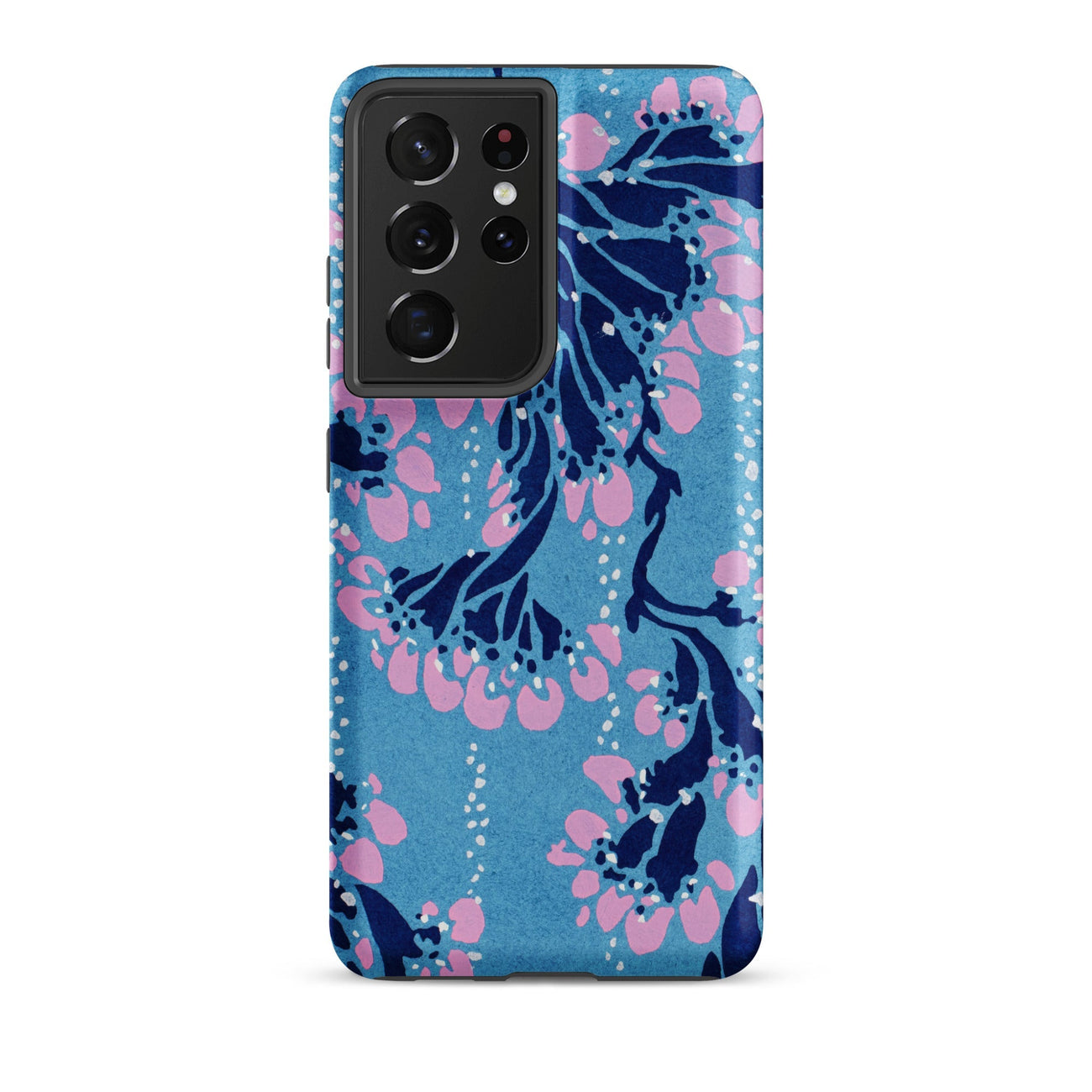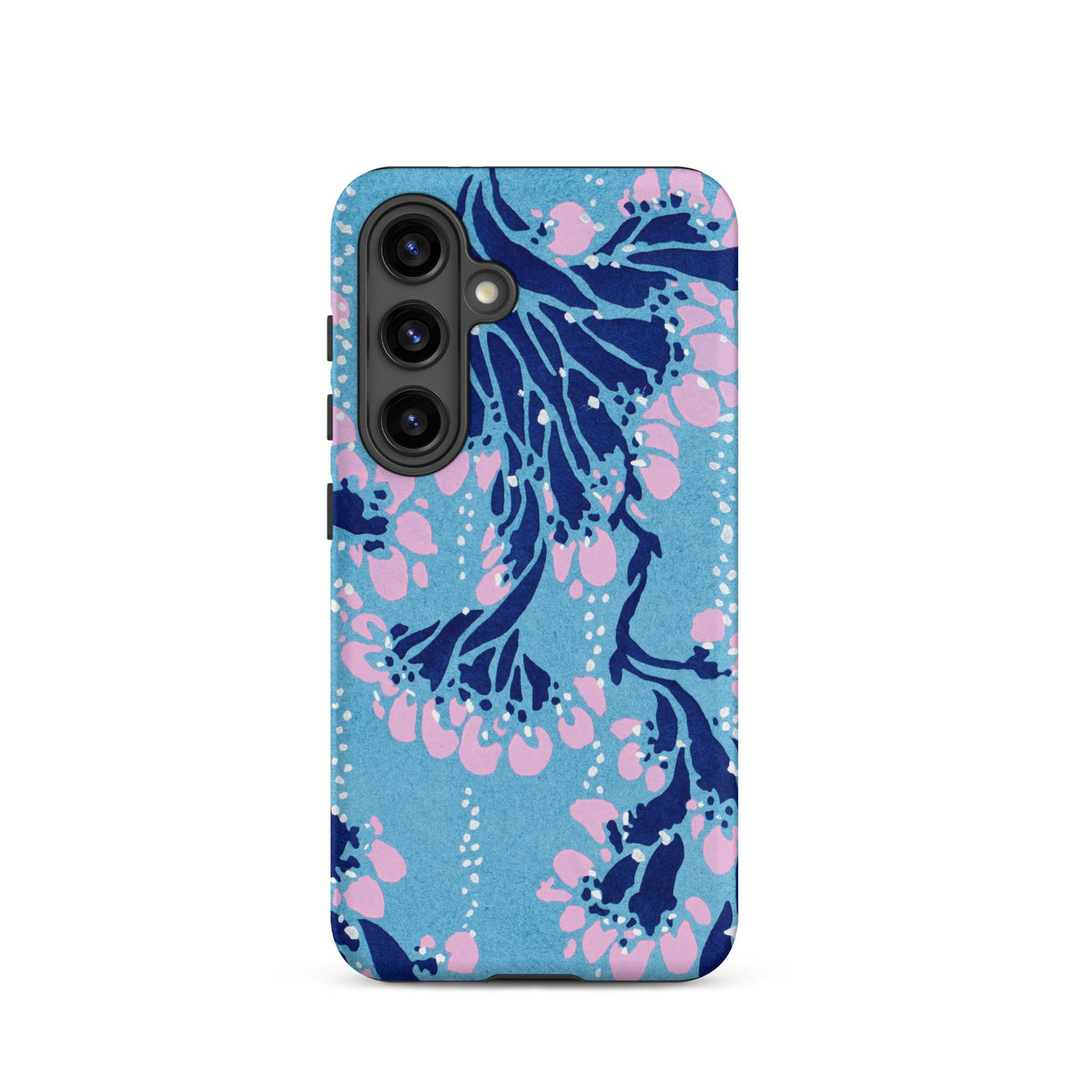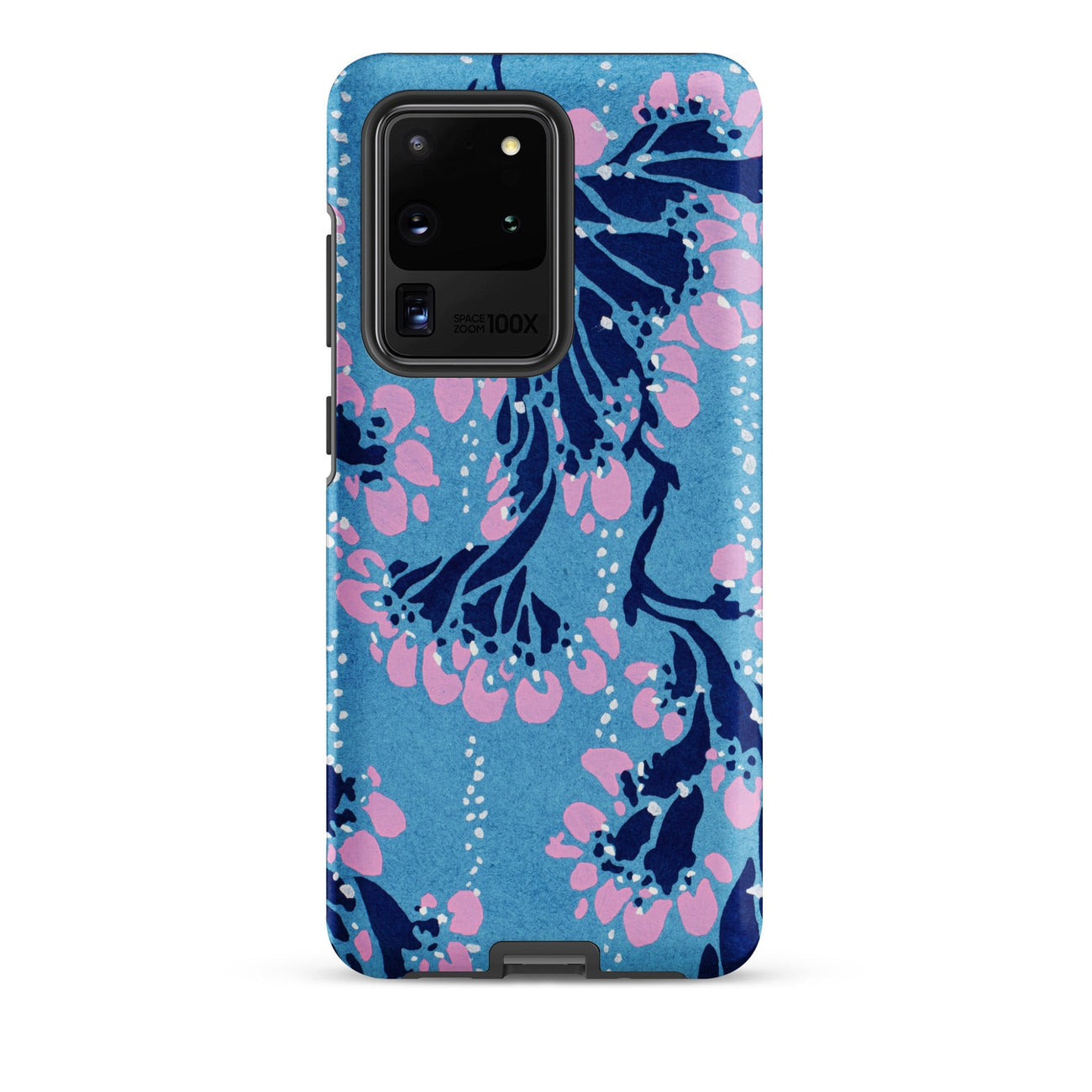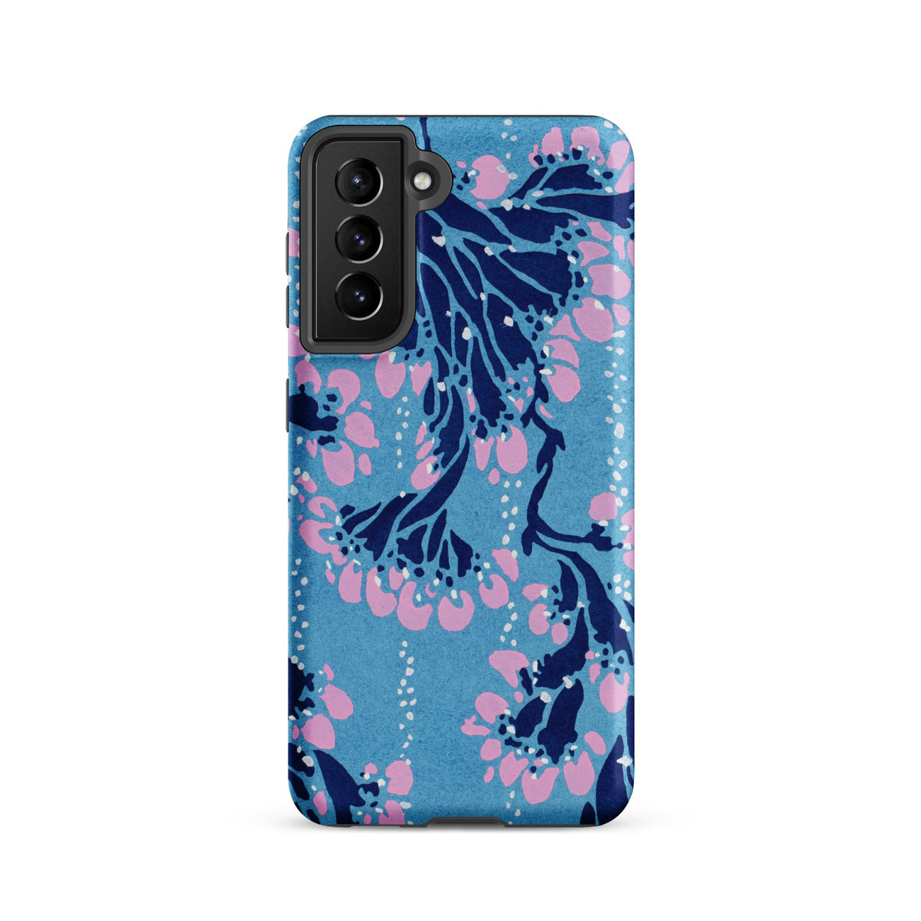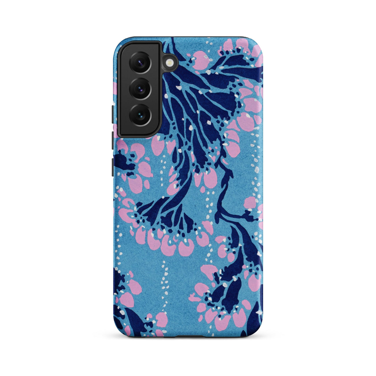 Floraux au pochoir bleu et rose - Coque Samsung E.A. Seguy