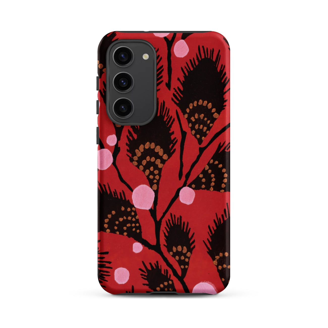 La maîtrise de Seguy de l'impression pochoir—les riches pigments de gouache, les bords pochoirés nets—transforme cet étui Samsung en une tranche portable de l'histoire décorative française. Son design, tiré de son portfolio du début du 20e siècle de motifs exotiques, transforme l'arrière de votre téléphone en un mur de galerie de théorie des couleurs, de patrimoine textile et de précision des arts appliqués. C'est un luxe parisien audacieux rendu en pur motif.