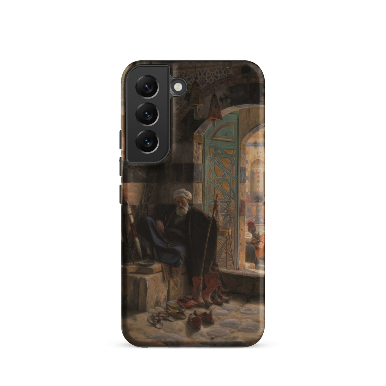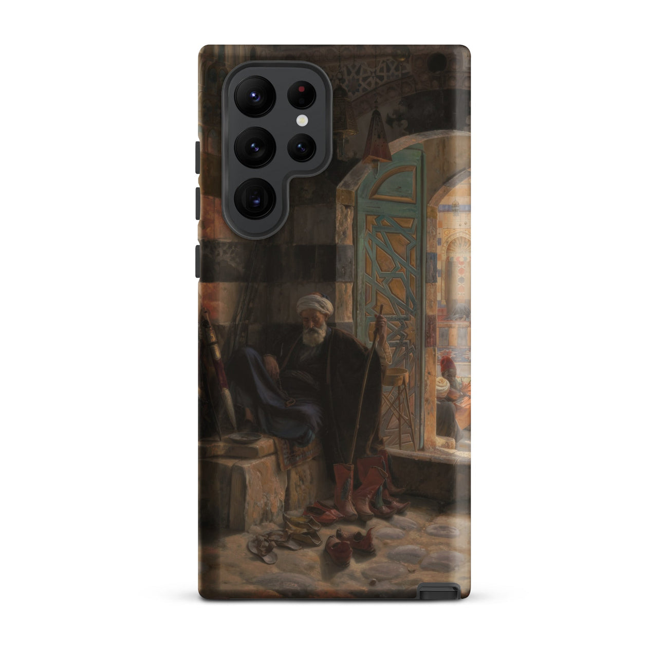 Sur cette coque Samsung, chaque coup de pinceau préserve la précision orientaliste du XIXe siècle pour l'ère moderne. Des motifs incrustés de l'arche de Damas au faible tumulte du marché au-delà. C'est un portail de poche vers l'artisanat de la fin de l'époque ottomane et le récit architectural méticuleux de Bauernfeind.